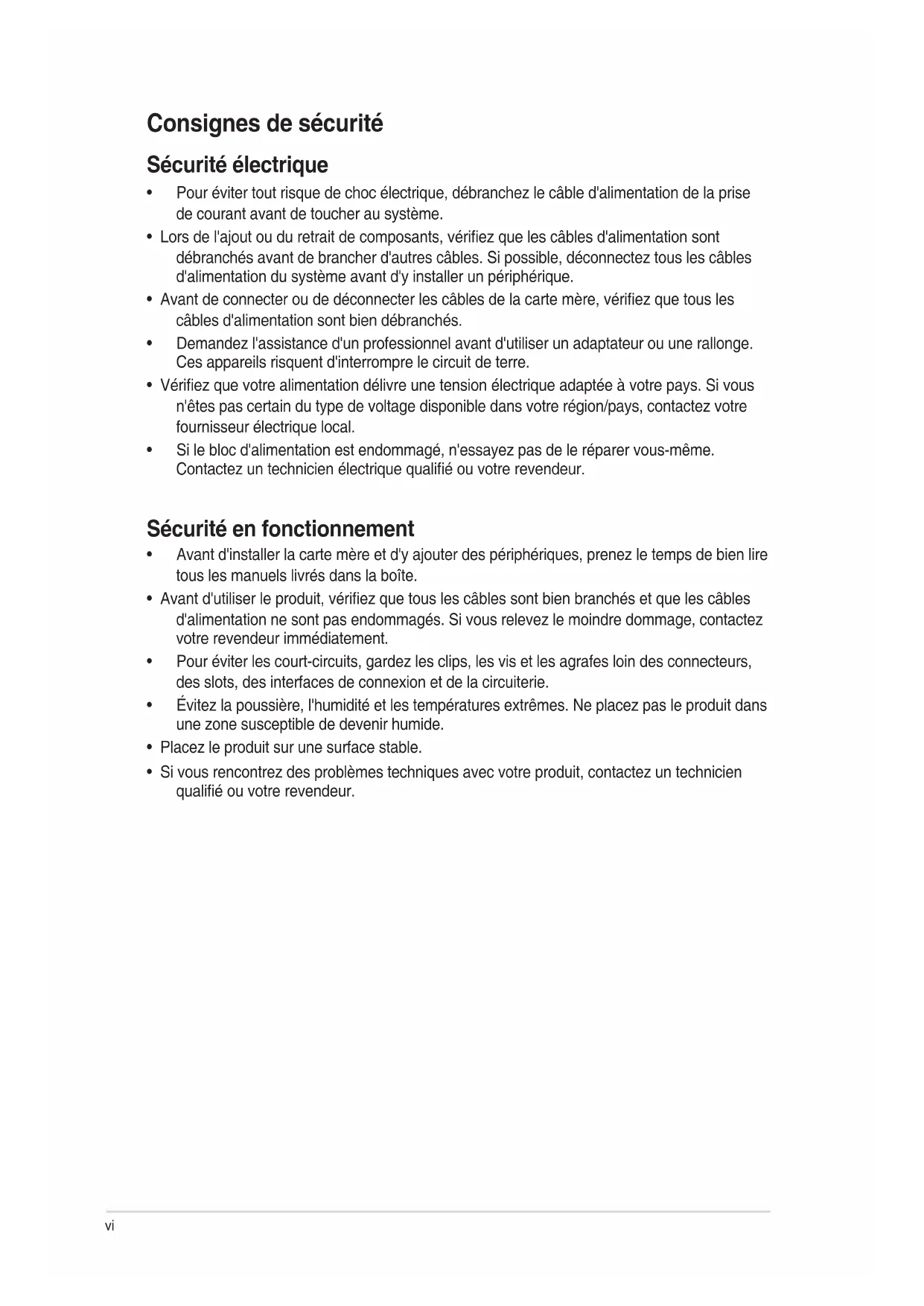 - Si vous rencontrez des problèmes techniques avec votre produit, contactez un technicien qualié ou votre revendeur.vii À propos de ce manuel Ce guide de l'utilisateur contient les informations dont vous aurez besoin pour installer et congurer la carte mère. Organisation du manuel Ce manuel contient les parties suivantes :