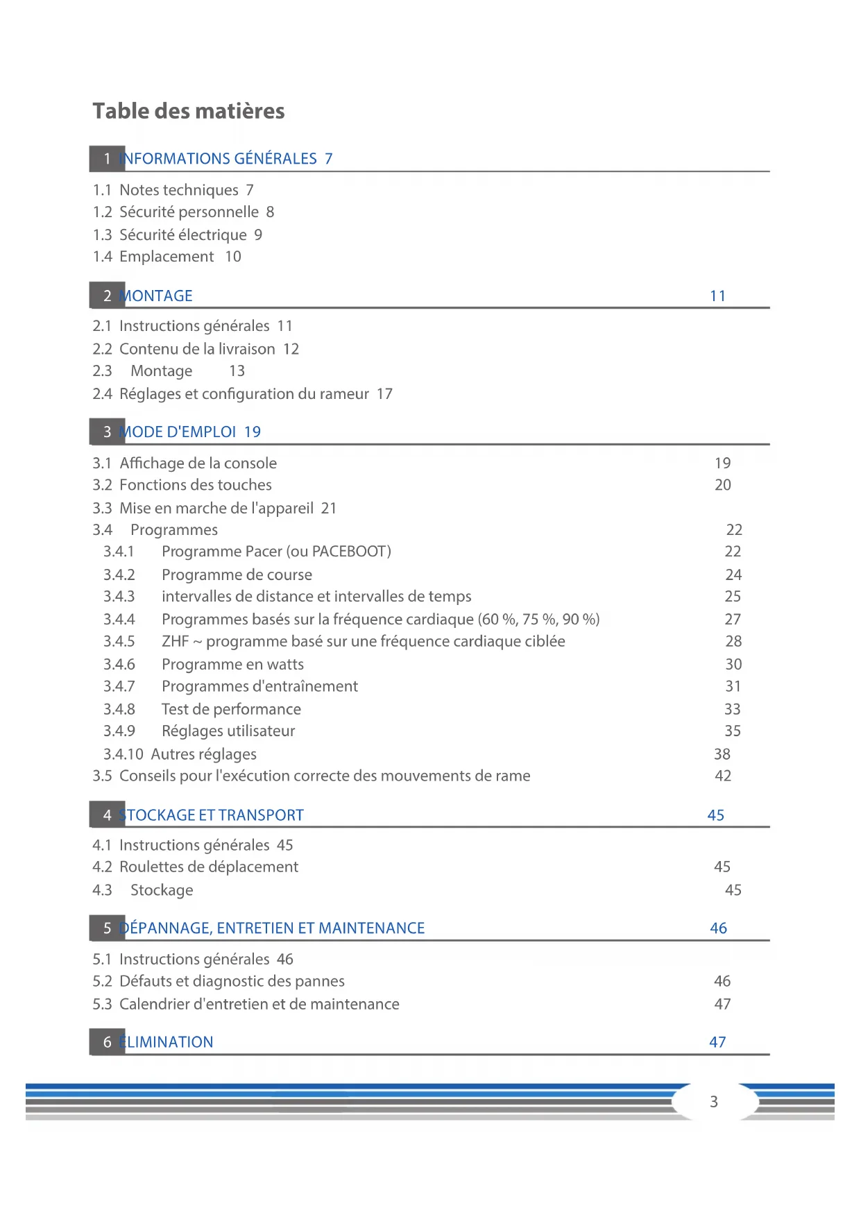 3.4.1 Programme Pacer (ou PACEBOOT) 22 3.4.2 Programme de course 24 3.4.3 intervals de distance et intervalles de temps 25 3.4.4 Programmes basés sur la fréquence cardiaque (60%, 75%, 90%) 27 3.4.5 ZHF programme basé sur une fréquence cardiaque ciblée 28 3.4.6 Programme en watts 30 3.4.7 Programmes d'entraînement 31 3.4.8 Test de performance 33 3.4.9 Réglages utiliser 35 3.4.10Autres réglages 38