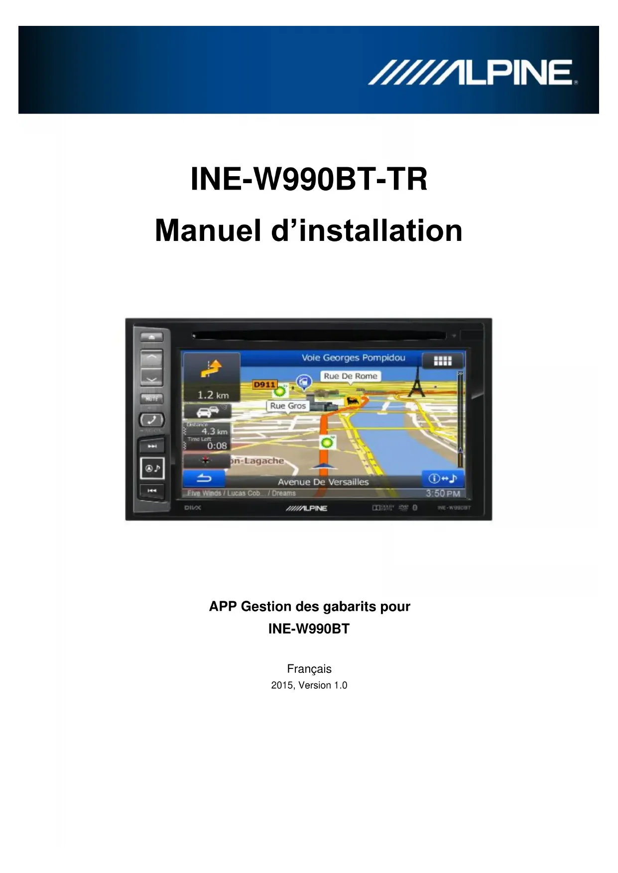 APP Gestion des gabarits pour INE-W990BT Français 2015, Version 1.0Recommandations d’installation pour INE-W990BT: