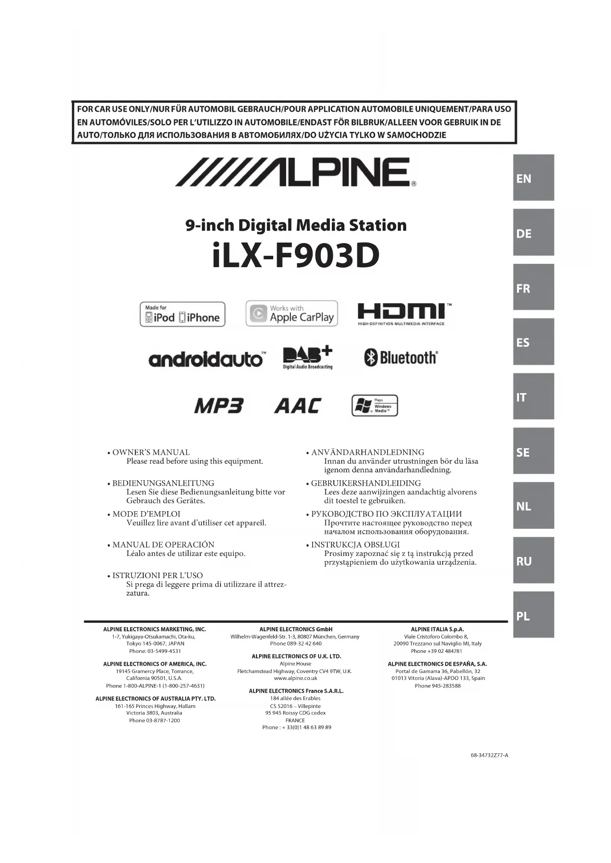 MODE D'EMPLOI ILXF903D ALPINE