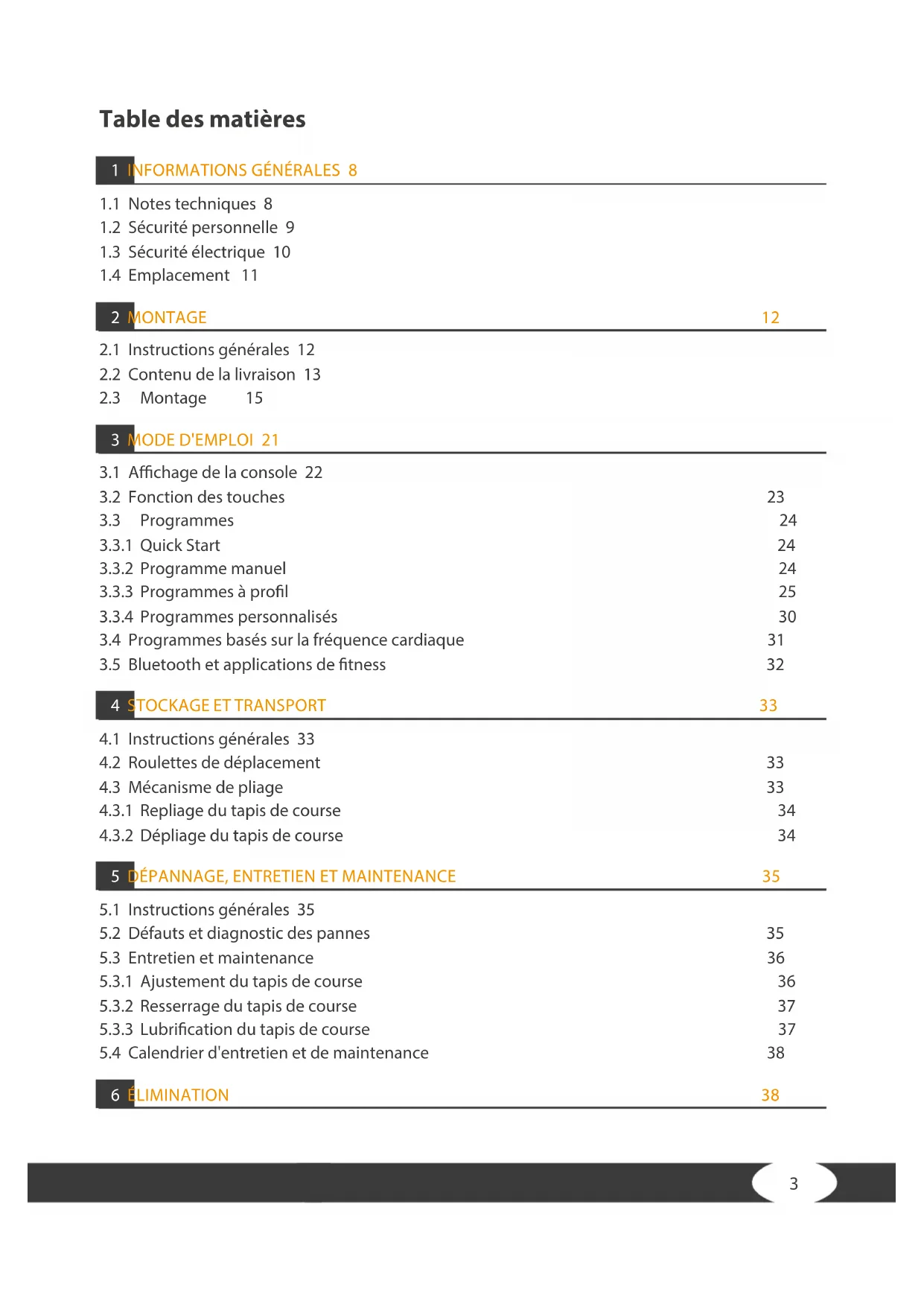 5.3.3 Lubrication du tapis de course 37