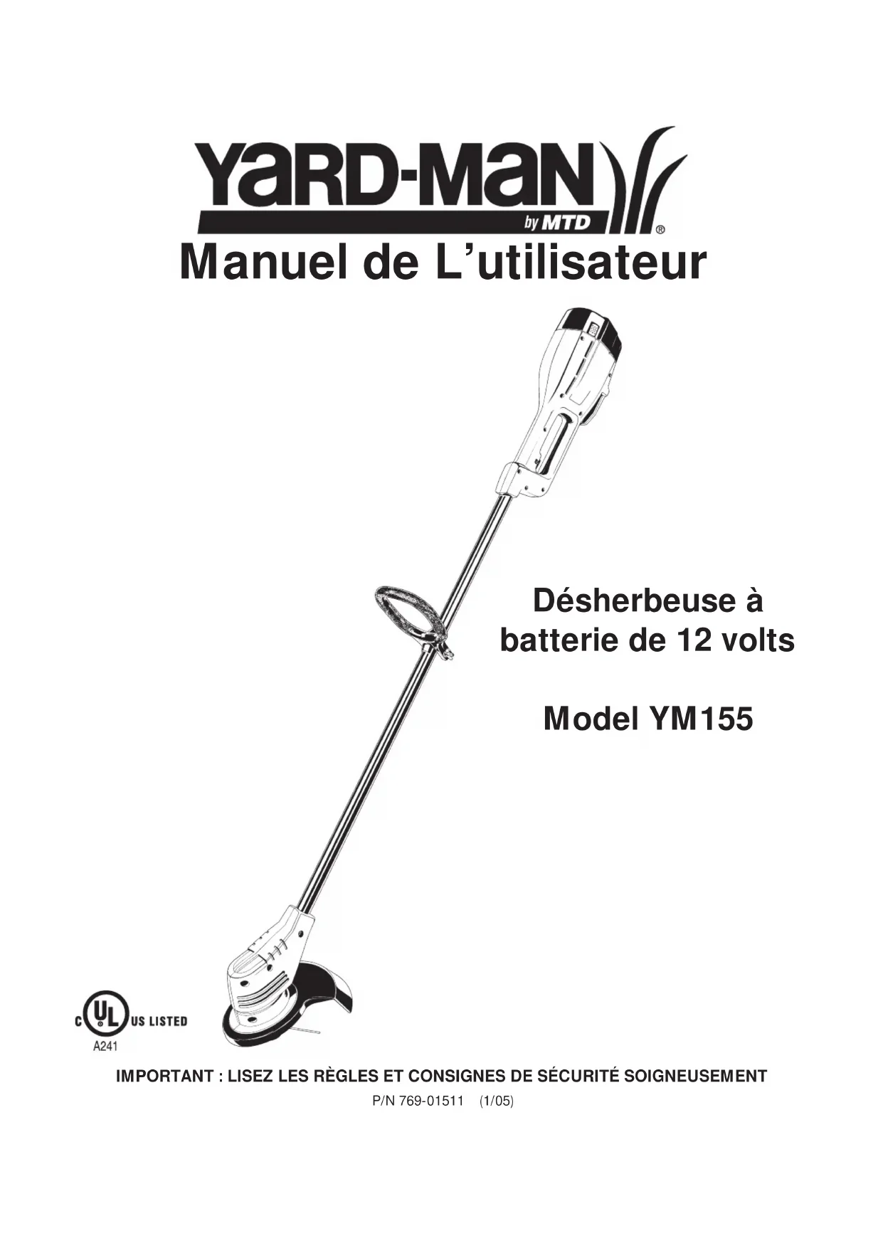 Téléchargez la notice de votre Coupe-herbe au format PDF gratuitement ! Retrouvez votre notice YM155 - Yard-Man et reprennez votre appareil électronique en main. Sur cette page sont publiés tous les documents nécessaires à l'utilisation de votre appareil YM155 de la marque Yard-Man.