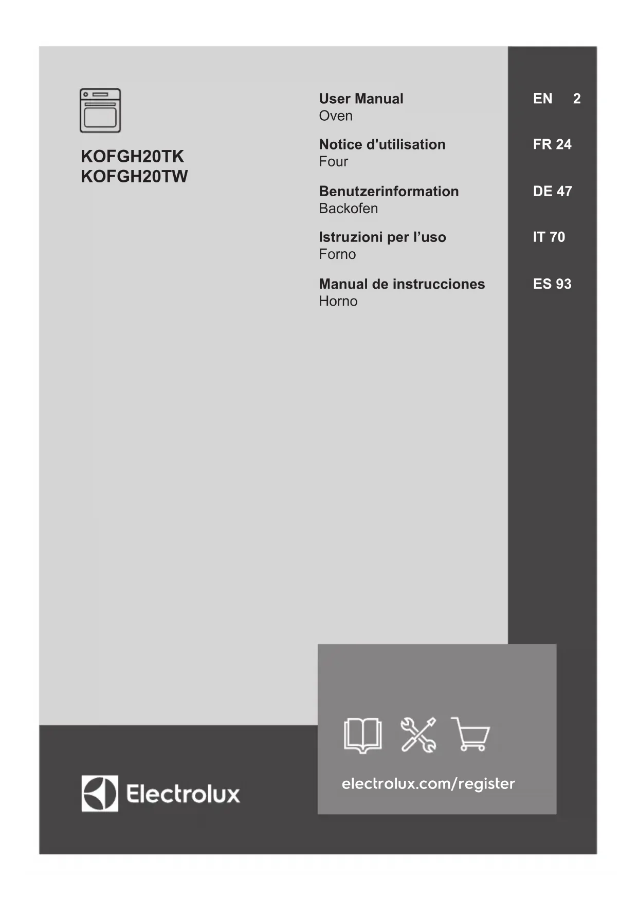 Retrouvez gratuitement la notice de l'appareil KOFGH20TK ELECTROLUX au format PDF.