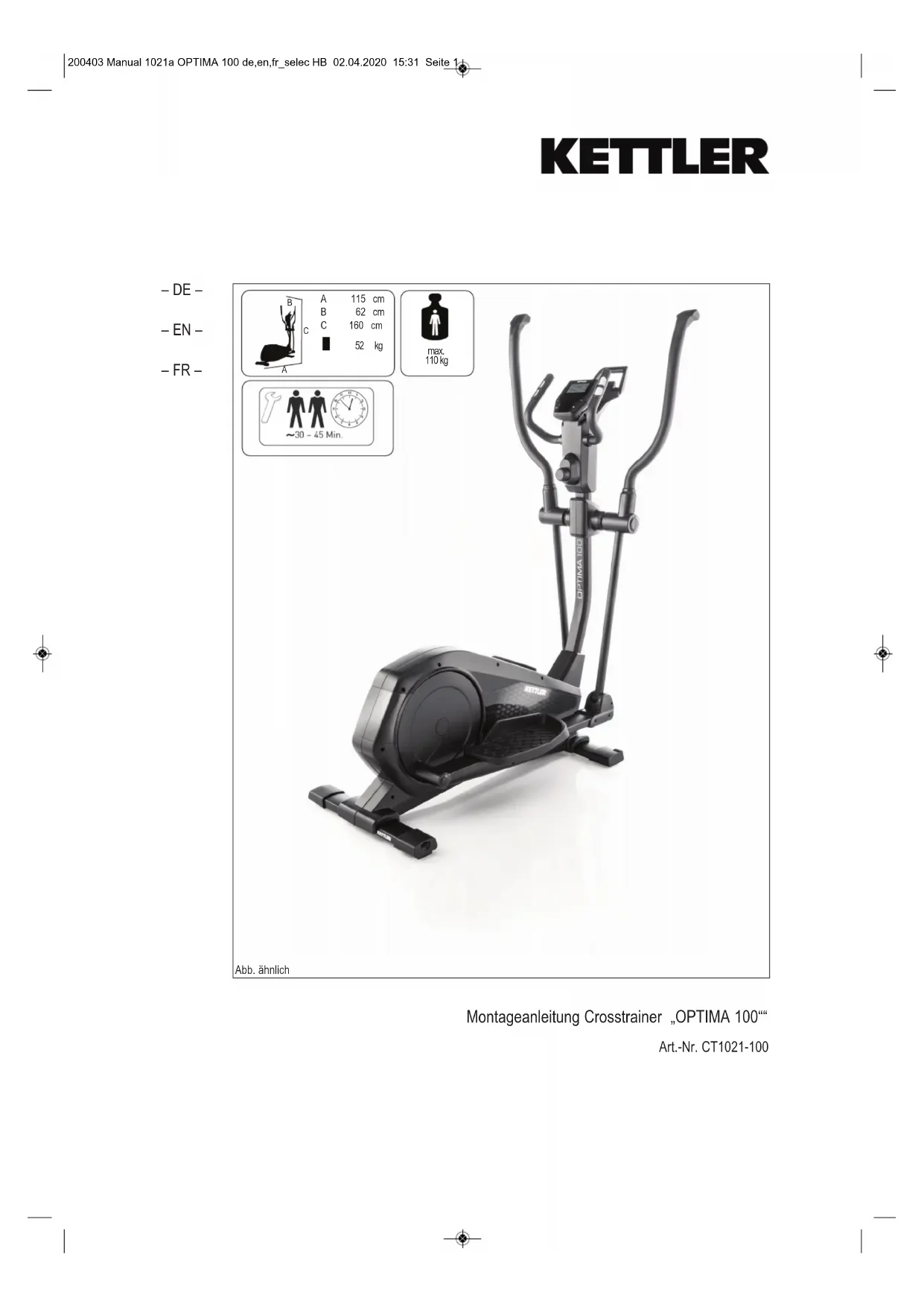 Retrouvez gratuitement la notice de l'appareil Optima 100 KETTLER au format PDF.