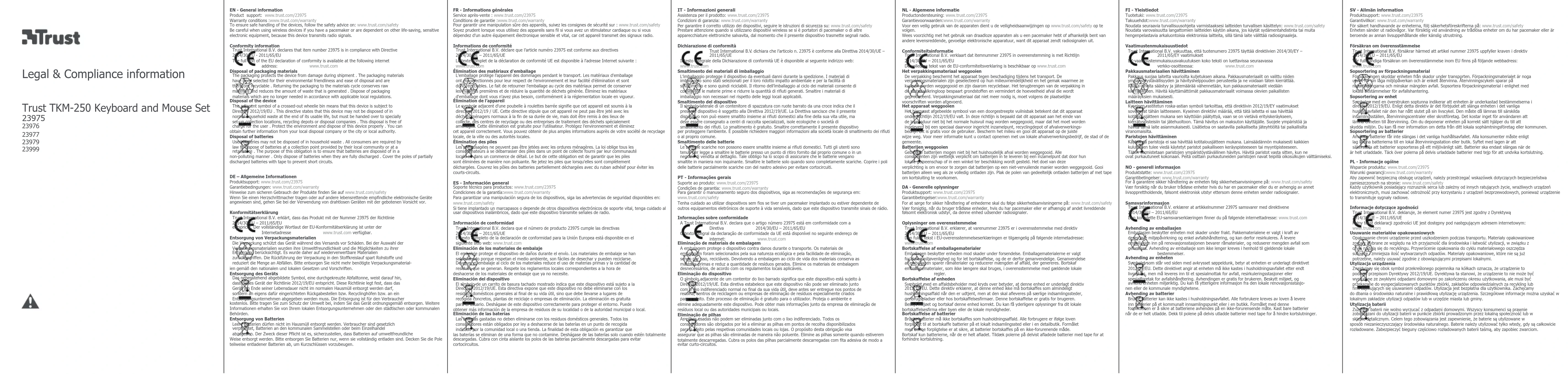 Retrouvez gratuitement la notice de l'appareil TKM250 TRUST au format PDF.