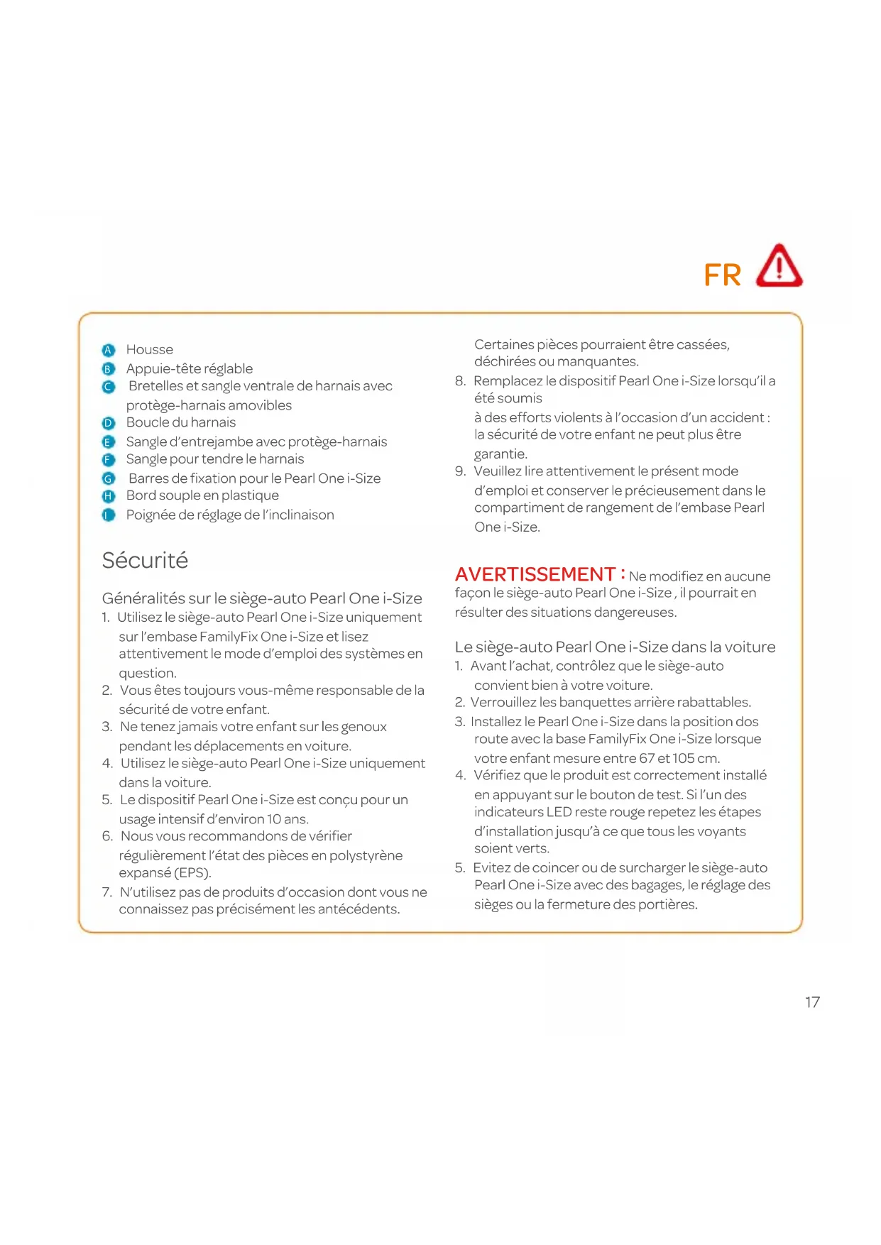 d’emploi et conserver le précieusement dans le compartiment de rangement de l’embase Pearl One i-Size. AVERTISSEMENT