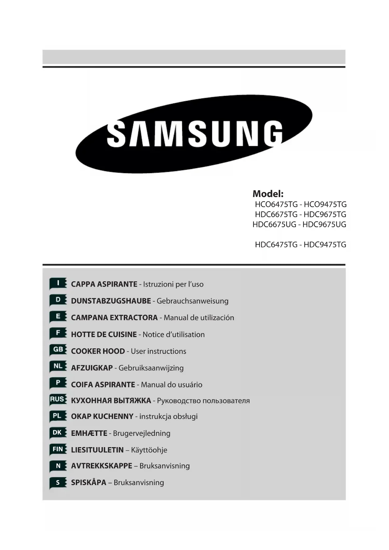 HCO6475TG - Hotte SAMSUNG - Notice d'utilisation et mode d'emploi gratuit