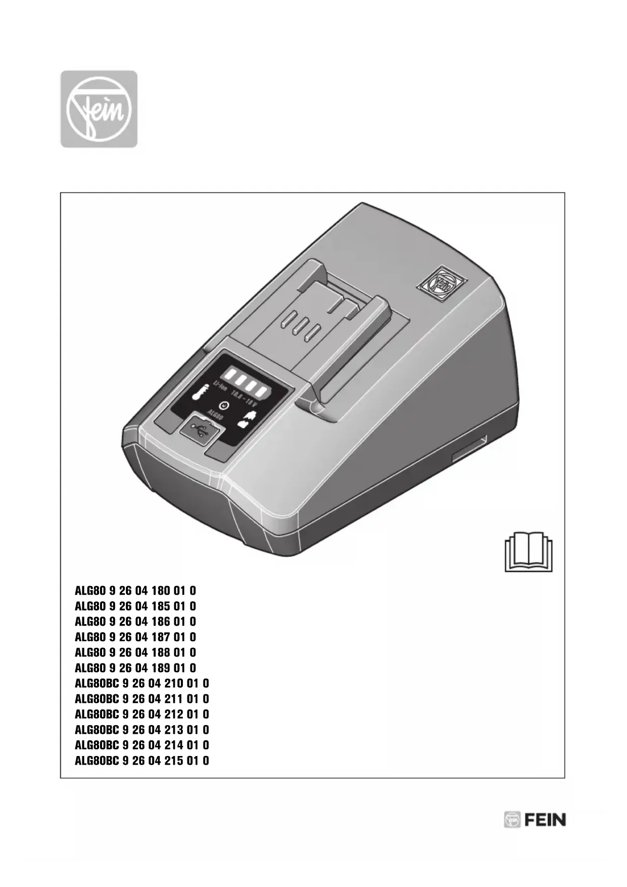 Traduction de la notice originale. Pour votre sécurité. Lire tous les aver- tissements de sécurité et toutes les instructions. Ne pas suivre les avertissements et instructions peut donner lieu à une électrocution, un incendie et/ou une blessure sérieuse. Conservez tous les avertissements et toutes les instructions pour pouvoir vous y reporter ultérieurement. Ne pas utiliser ce chargeur avant d’avoir bien lu et com- plètement compris cette notice d’utilisation. Garder bien ces documents pour une utilisation ulté- rieure et les joindre au chargeur en cas de transmission ou vente à une tierce personne. De même, respecter les dispositions concernant la prévention des acci- dents du travail en vigueur dans le pays en question. Utilisation des chargeurs : Les chargeurs sont conçus comme outillage professionnel dans l’artisa- nat, pour charger et recharger des batteries Li-Ion FEIN avec les carac- téristiques suivants : Instructions particulières de sécurité. Cet appareil peut être utilisé par des enfants de 8 ans et au delà ainsi que par des personnes disposant de capa- cités physiques réduites et manquant d’expérience et de connaissances à condition que ces derniers soient supervisées ou qu’elles aient été ins- truites quant au maniement de l’appareil et quant aux dangers qu’il représente. Les enfants ne doivent pas jouer avec l'appareil. Les enfants ne doivent pas nettoyer ni effectuer des travaux d’entretien sans être sur- veillé. N’exposez pas le chargeur à la pluie ou à des conditions humides. La pénétration d’eau dans un outil élec- troportatif augmente le risque d’un choc électrique. N’utilisez pas le chargeur sur un sol facilement inflammable ou dans un environnement inflammable. L’échauffement du chargeur lors du processus de charge augmente le ris- que d’incendie. Veillez toujours à une aération suffi- sante pendant l’utilisation. Ne faites pas fonctionner le chargeur dans des armoires fermées ou à proximité de sources de chaleur. Les températu- res environnantes supérieures à +45 °C peuvent entraîner des dys- fonctionnements. Ne chargez pas de piles non rechar- geables. Sinon, il y a risque d’incen- die et d’explosion. Maintenir le chargeur propre. Un encrassement représente un risque de choc électrique. Chargeur ALG80 / ALG80BC Type de batterie Li-Ion* Tension (V) 10,8 – 18 Nombre d’éléments ≥ 3 Capacité (mAh) ≥ 1000 Tension cellulaire (V) 3,6