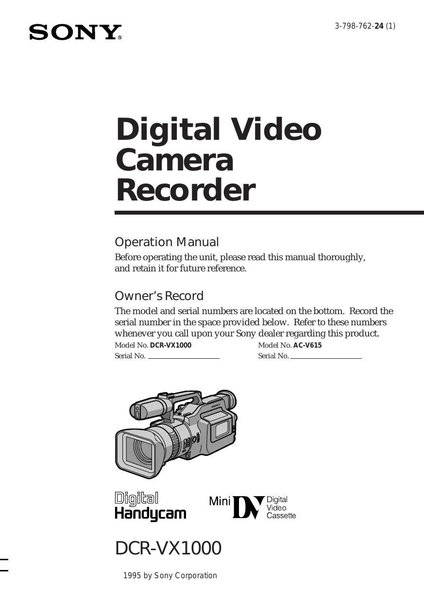 Téléchargez la notice de votre Caméscope au format PDF gratuitement ! Retrouvez votre notice DCR-VX1000 - SONY et reprennez votre appareil électronique en main. Sur cette page sont publiés tous les documents nécessaires à l'utilisation de votre appareil DCR-VX1000 de la marque SONY.