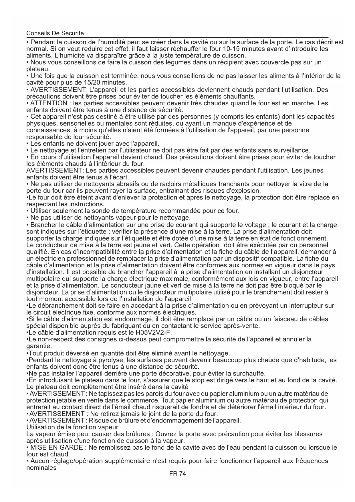 - Aucun réglage/opération supplémentaire n’est requis pour faire fonctionner l’appareil aux fréquences nominales Conseils De Securite FR 74Sommaire FR 75 Nettoyage du four et maintenance Instructions Générales