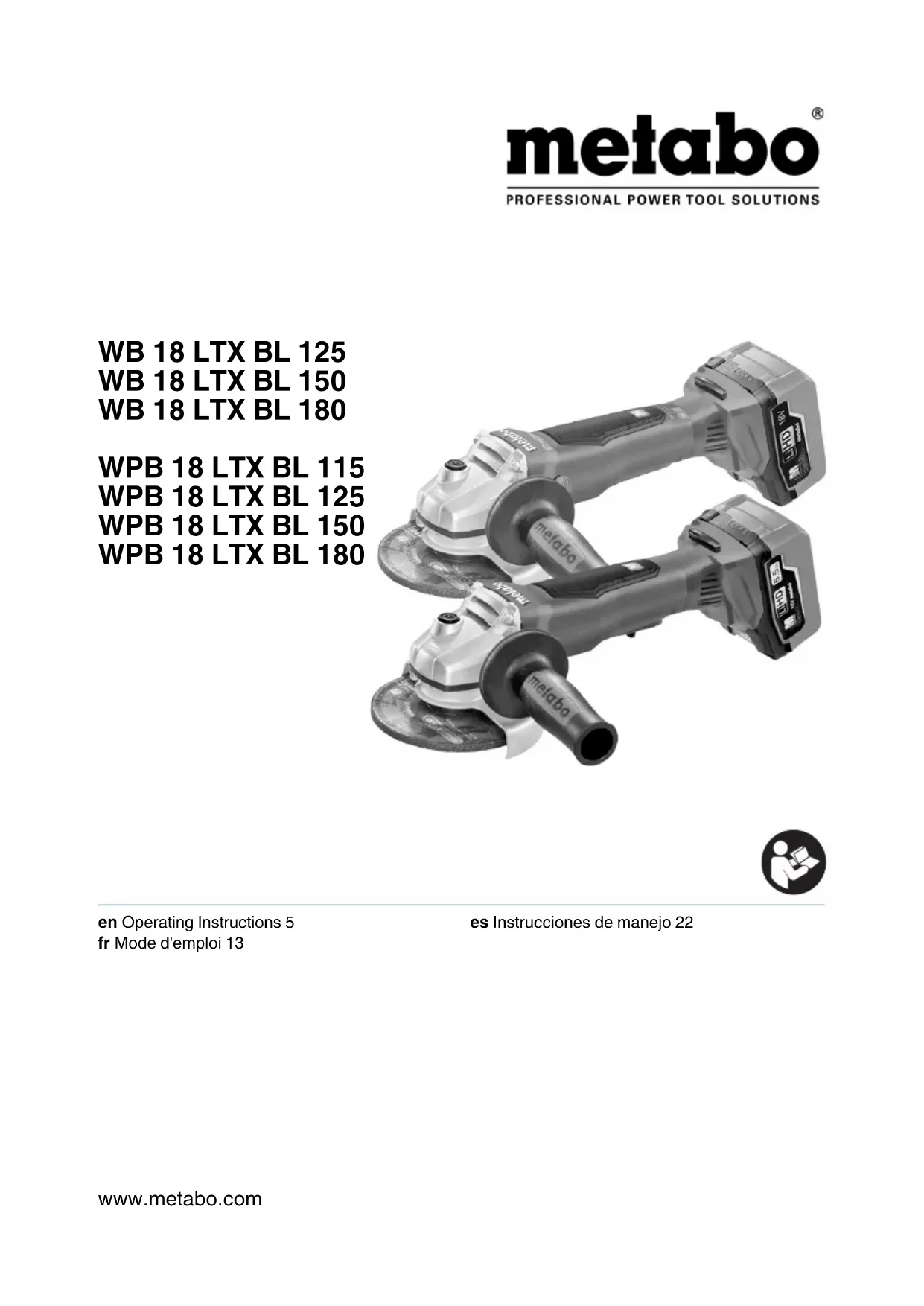 Retrouvez gratuitement la notice de l'appareil WPB 18 LTX BL 150 METABO au format PDF.