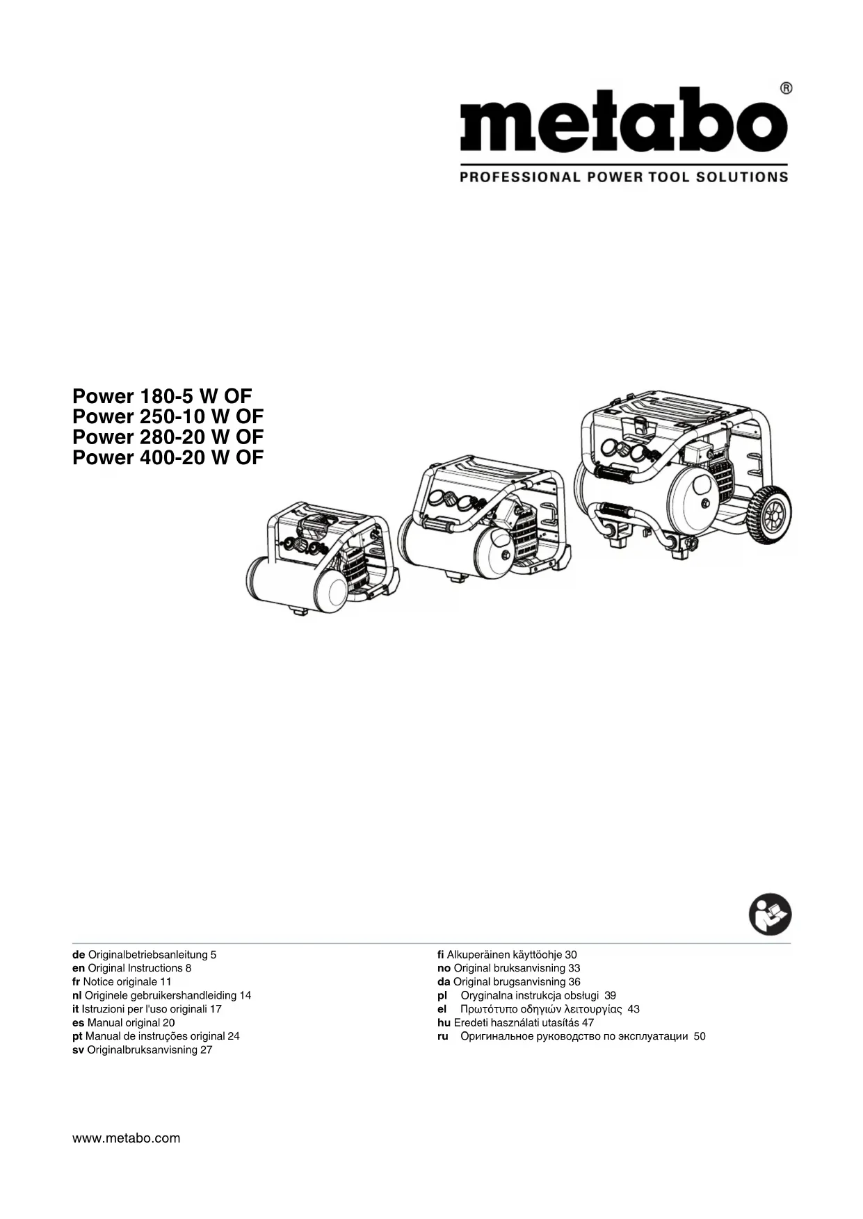 Power 28020 W OF - Compresseur METABO - Notice d'utilisation et mode d'emploi gratuit