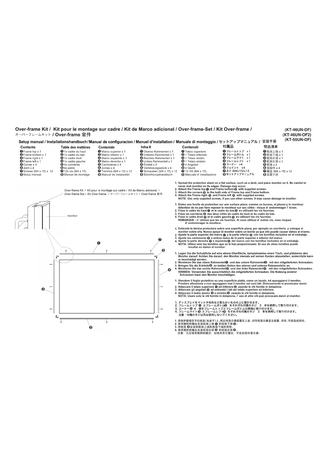 1. Fixez le cadre du haut et le cadre du bas en utilisant les vis fournies.