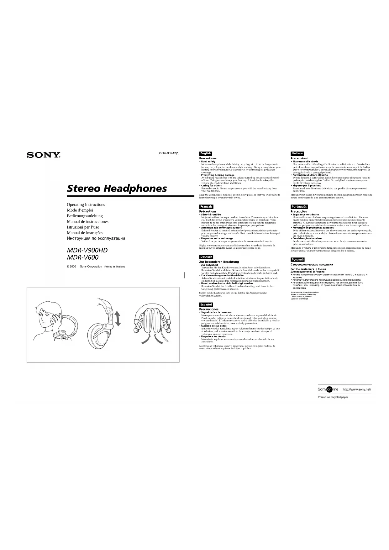 Téléchargez la notice de votre Ecouteur au format PDF gratuitement ! Retrouvez votre notice MDRV600 - SONY et reprennez votre appareil électronique en main. Sur cette page sont publiés tous les documents nécessaires à l'utilisation de votre appareil MDRV600 de la marque SONY.