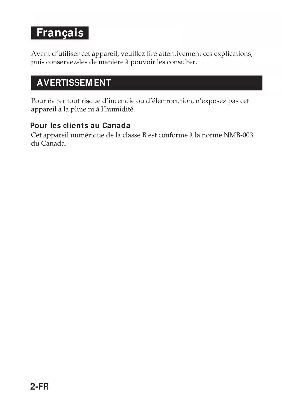 - Le modem du réseau câblé ne peut pas reconnaître l'ordinateur. c Eteignez-le puis rallumez-le. c Réglez le modem pour qu’il reconnaisse l’ordinateur. (Contactez votre société de réseau câblé pour le détail sur le réglage du modem.) Impossible de télécharger des pages du navigateur Impossible de se connecter Impossible d’envoyer ou de recevoir du courrier électronique. Impossible de se connecter au réseau après l’installation de l'adaptateur Ethernet USB, même si l’ordinateur est raccordé au modem du réseau câblé.13-FR Spécifications Interface LAN Standard de l’interface IEEE802.3 (10BASE-T)/ IEEE802.3U (100BASE-TX) Connecteur de l’interface RJ-45 Contrôle d’accès CSMA/CD Interface USB Standard de l’interface Compatible USB Connecteur de l’interface Fiche Mini A Alimentation Par bus Tension de fonctionnement DC 5 V (fournis par l’interface USB) Consommation d’électricité max. 200 mA Généralités Dimensions approx. 69 × 26,5 × 35 mm (2 3/4 × 1 1/16 × 1 7/16 po) (largeur × hauteur × profondeur) Longueur totale du câble approx. 355 mm (14 po) Poids approx. 36 g (1,3 on) Température de fonctionnement 0°C à +40°C Température de stockage –20°C à +60°C Accessoires Mode d’emploi (1) La conception et les spécifications peuvent être modifiées sans avis préalable.2-DE Deutsch Lesen Sie vor dem Betrieb diese Anleitung sorgfältig durch, und bewahren Sie sie zum späteren Nachschlagen gut auf. ACHTUNG Um Feuergefahr und die Gefahr eines elektrischen Schlags zu vermeiden, setzen Sie das Gerät weder Regen noch sonstiger Feuchtigkeit aus.3-DE Inhaltsverzeichnis Zur besonderen Beachtung ................................................................................. 4 Vorsichtsmaßnahmen beim Betrieb ................................................................... 5 Wartung ................................................................................................................. 6 Bezeichnung der Teile.......................................................................................... 7 Vor dem Betrieb .................................................................................................... 8 Vorbereitung ......................................................................................................... 8 Anschluss an ein LAN über den Ethernetadapter ................................... 8 Internetzugriff ............................................................................................... 9 Abtrennen des USB-Ethernetadapters vom Camcorder............................... 10 Anschluss an xDSL, Kabelmodem usw. ......................................................... 11 Störungssuche ..................................................................................................... 12 Technische Daten................................................................................................ 13 Merkmale