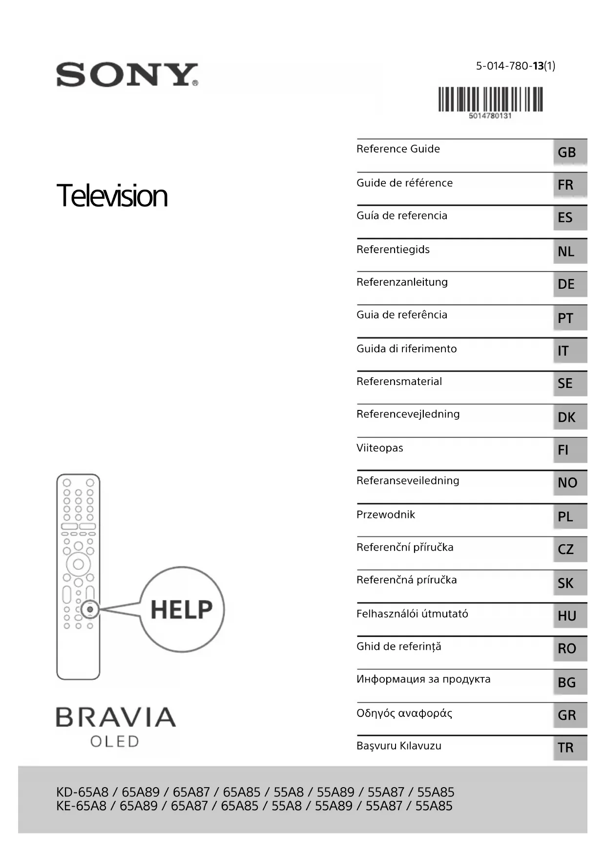 Retrouvez gratuitement la notice de l'appareil Bravia OLED KD55A85 SONY au format PDF.