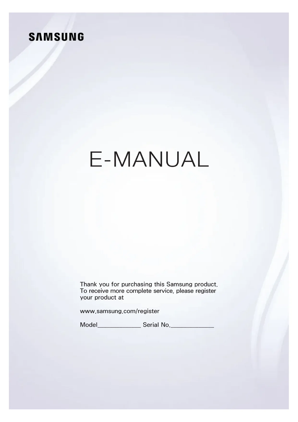 E-MANUAL Thank you for purchasing this Samsung product. To receive more complete service, please register your product at www.samsung.com/register Model______________ Serial No.______________Contents Guides de démarrage Utilisation de Smart Hub 1 Connexion à Internet 1 Configuration de Smart Hub 1 Utilisation de Smart Hub Commande vocale du téléviseur 2 Configuration de Reconnaissance vocale 3 Commande vocale du téléviseur Commande par mouvement du téléviseur 4 Configuration de Commande par mouv. 5 Contrôle du téléviseur à l'aide de gestes Utilisation du Samsung Smart Control 6 Utilisation du téléviseur avec le bouton POINTER 7 Configuration du Samsung Smart Control 7 Pairage du téléviseur au Samsung Smart Control Amélioration de l'expérience visuelle des événements sportifs 8 Activation de la fonction Mode Sport Modification des chaînes 9 Activation de la fonction Modifier la chaîne 9 Réorganisation ou suppression de chaînes Lecture de plusieurs écrans Connexions Raccordement d'une antenne (Antenne) Connexion à Internet 12 Mise en place d'une connexion câblée à Internet 13 Mise en place d'une connexion sans fil à Internet Connexion à un réseau au moyen d'un dongle mobile Résolution des problèmes de connectivité Internet 16 Résolution des problèmes de connectivité Internet câblée 17 Résolution des problèmes de connectivité Internet sans fil Connexion de périphériques vidéo 18 Connexion à l'aide d'un câble HDMI 19 Connexion à l'aide d'un câble composant 20 Connexion à l'aide d'un câble composite (A/V) Connexions d'entrée et de sortie audio 21 Connexion à l'aide d'un câble HDMI (ARC) 22 Connexion à l'aide d'un câble audio numérique (optique) 22 Branchement d'un casque Connexion à un ordinateur 23 Connexion via le port HDMI 24 Connexion à l'aide d'un câble HDMI vers DVI 24 Connexion via votre réseau domestique Connexion d'un périphérique mobile 25 Connexion à l'aide d'un câble MHL vers HDMI 26 Utilisation de Réplication de l'écran 27 Connexion de périphériques mobiles sans routeur sans fil (Wi-Fi Direct) 28 Connexion d'un périphérique mobile via Samsung Smart View Pairage d'un ordinateur portable et du téléviseur - Mise en miroir de PC sans fil (ou KINO TV) Modification du signal d'entrée avec des périphériques externes Remarques sur la connexion 30 Remarque sur la connexion HDMI 31 Remarque sur la connexion des périphériques audio 31 Remarque sur la connexion des ordinateurs 32 Remarque sur la connexion des périphériques mobiles 32 Remarques concernant la connexion pour la mise en miroir de PC sans fil (ou KINO TV) Télécommande et périphériques À propos du Samsung Smart Control Utilisation du Samsung Smart Control 35 Utilisation du téléviseur avec le bouton POINTER 35 Utilisation du téléviseur avec les touches de direction et le bouton Entrer 36 Affichage et utilisation de la télécommande visuelle 37 Pairage du téléviseur au Samsung Smart Control IICommande des périphériques externes à l'aide de la télécommande du téléviseur - Utilisation de la télécommande universelle 38 Réglage de la télécommande universelle Commande du téléviseur à l'aide d'un clavier 39 Connexion d'un clavier 40 Utilisation du clavier Commande du téléviseur à l'aide d'une souris 41 Connexion d'une souris USB 41 Utilisation d'une souris Connexion d'une manette Bluetooth Saisie de texte à l'aide du clavier QWERTY à l'écran 43 Utilisation des autres fonctions Fonctions Smart Affichage de plusieurs écrans ou fonctions avec Multi-Link Screen 44 Utilisation de Multi-Link Screen Smart Hub 46 Supprimer ou épingler un élément dans le groupe Récente 46 Lancement automatique de Smart Hub 46 Test des connexions Smart Hub 47 Utilisation du didacticiel Smart Hub 47 Réinitialisation de Smart Hub Utilisation de Smart Hub avec un Compte Samsung 48 Création d'un compte Samsung 49 Ouverture d'un compte Samsung 49 Association de votre compte Samsung à vos comptes de services externes 50 Modification et ajout d'informations à un compte Samsung 50 Suppression d'un compte Samsung du téléviseur Utilisation du service GAMES 51 Gestion des jeux via le menu contextuel Options 51 Affichage de l'écran d'informations détaillées 52 Installation et exécution d'un jeu 52 Gestion des jeux téléchargés ou achetés Utilisation du service Mes Applications 54 Gestion des applications téléchargées avec le menu contextuel Options 55 Installation d'une application 55 Activation des mises à jour automatiques des applications 55 Suppression d'une application du téléviseur 56 Déplacement des applications 56 Verrouillage et déverrouillage des applications 56 Mise à jour des applications 56 Réorganisation des applications 56 Notation des applications achetées 56 Utilisation des autres caractéristiques et fonctions de l'application Utilisation de l'e-Manual 57 Lancement du manuel électronique 57 Utilisation des boutons du manuel électronique Utilisation du navigateur Web. 58 Préférences de navigation Utilisation du service MON CONTENU 59 À lire avant de lire du contenu multimédia 60 Lecture de contenu multimédia sur un ordinateur ou un périphérique mobile 60 Lecture de contenu multimédia enregistré sur un périphérique USB 61 Boutons et fonctions disponibles pendant le visionnage de photos 63 Boutons et fonctions disponibles pendant le visionnage de vidéos 65 Boutons et fonctions disponibles pendant la lecture de musique 66 Écoute de musique en qualité HD 66 Fonctions de l'écran de liste de contenu multimédia Utilisation du service NewsON 67 Actualités 67 Météo Commande vocale du téléviseur 69 À lire avant d'utiliser la fonction de reconnaissance vocale 69 Apprentissage des principes de base de la reconnaissance vocale 70 Utilisation de la reconnaissance vocale impérative 70 Utilisation de la reconnaissance vocale interactive à une courte distance 70 Utilisation du didacticiel de reconnaissance voca