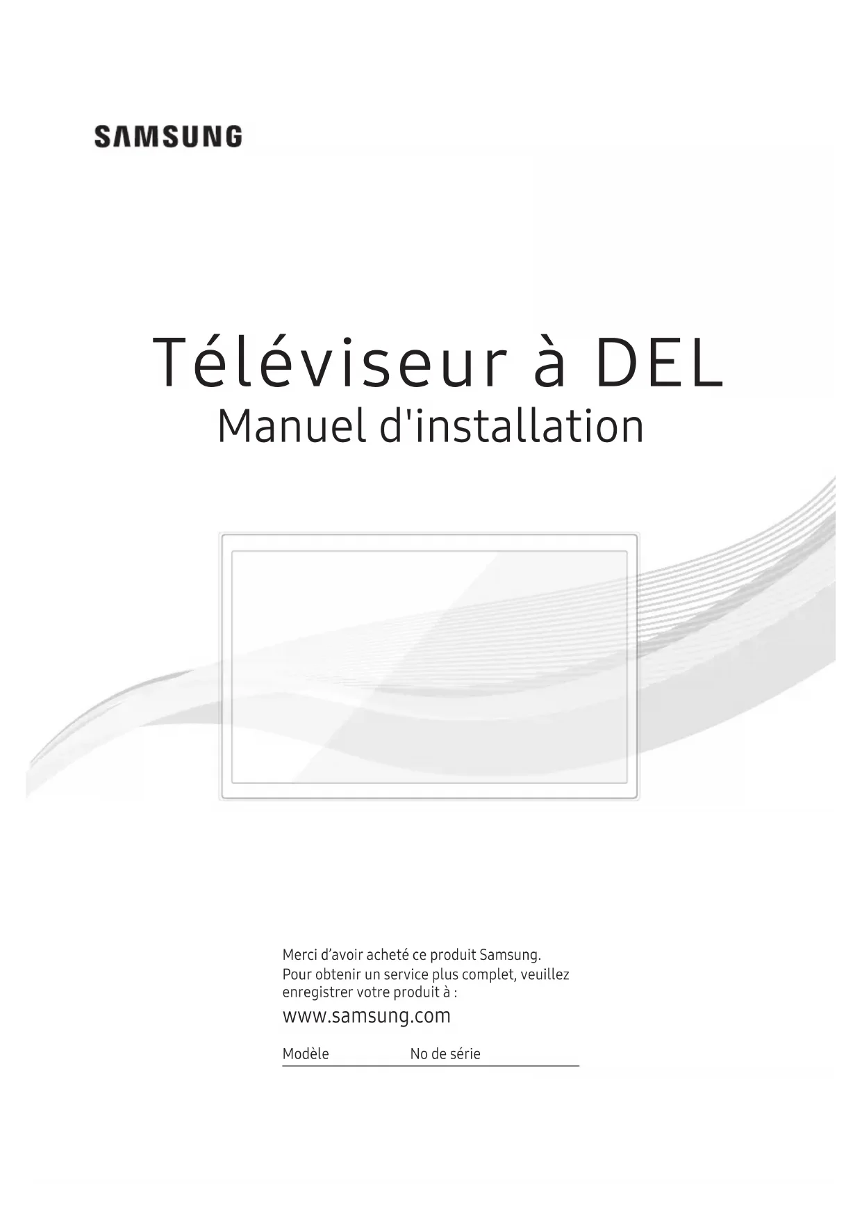 Merci d’avoir acheté ce produit Samsung. Pour obtenir un service plus complet, veuillez enregistrer votre produit à: www.samsung.com Modèle No de série Téléviseur à DEL Manuel d'installation