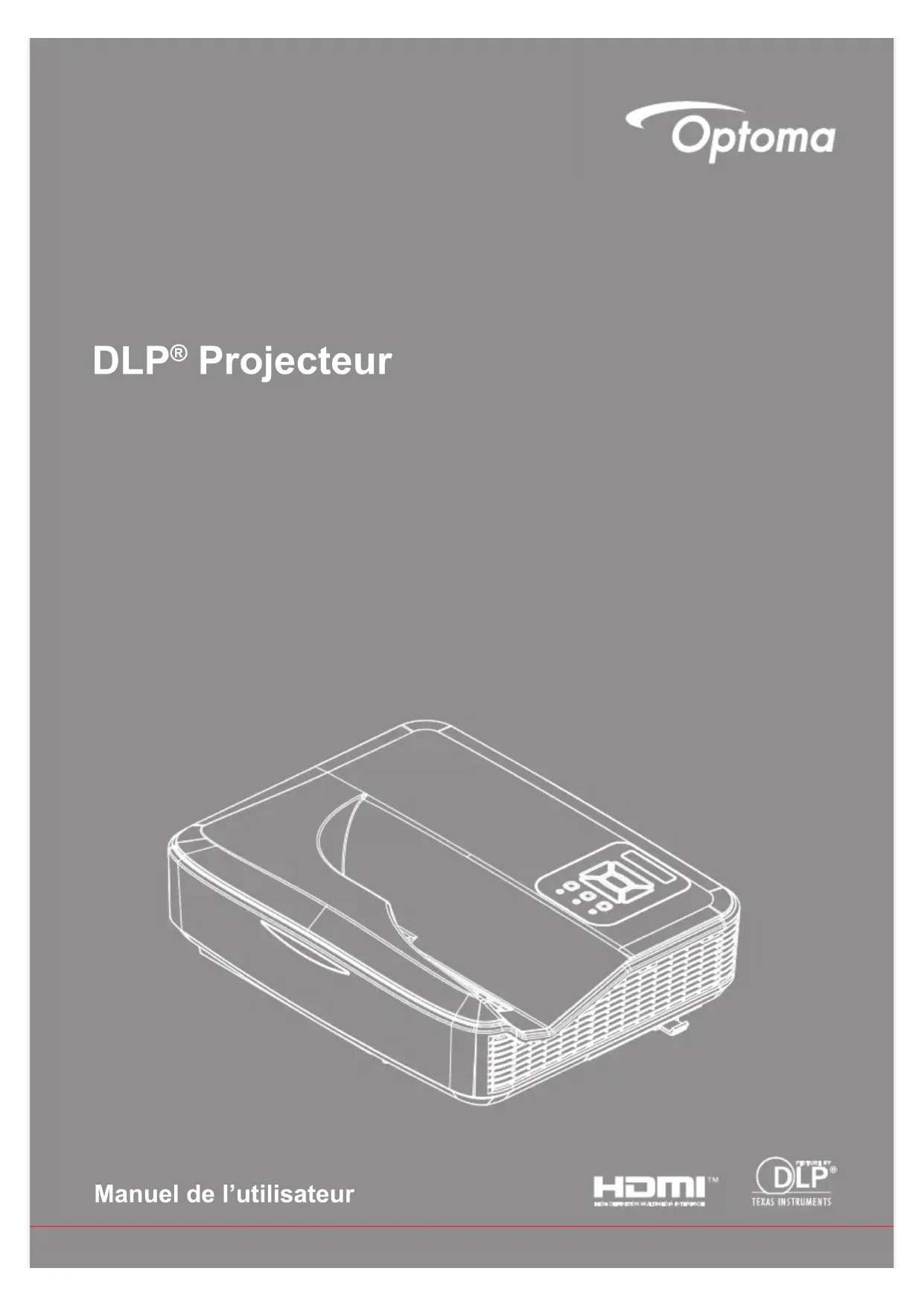 Extrêmement humide: > 70% d’humidité relative (Humi- dité relative) - Dans des zones susceptibles de comporter un excès de poussière et de saleté. - A proximité de tout appareil générant un champ magnétique puissant. - Sous la lumière directe du soleil.6 Français Introduction Accessoires en option varient selon le modèle, la spécication et la région.Pour les autres accessoires de rideau laser, veuillez vous référer au manuel d'utilisation du rideau laser.*Pour plus d’informations sur la garantie euro-péenne, veuillez visiter le site www.optomaeu-rope.com Contenu du paquet Déballez et inspectez le contenu du carton pour vous assurer que toutes les parties listées ci-dessous sont présentes. Si quelque chose venait à manquer, veuillez contacter votre service clientèle le plus proche. ProjecteurCâble VGA 2 piles AAACordon d’alimentationCâble HDMI Carte de garantie* Manuel de l’utilisa-teur de base Documentation HDMI2HDMI1 VGA1 VGA2 FreezeBlankImageAspectKeystoneVolumeZoom-Reset Auto InputZoom+ Power enu Exit Enter TélécommandeModule rideau laserDongle Wi Accessoires standard Accessoires optionnels7 Français Introduction Aperçu du produit Unité principale