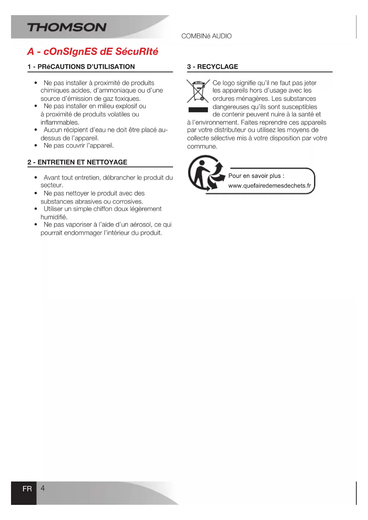 1 - PRéCAUTIONS D’UTILISATION