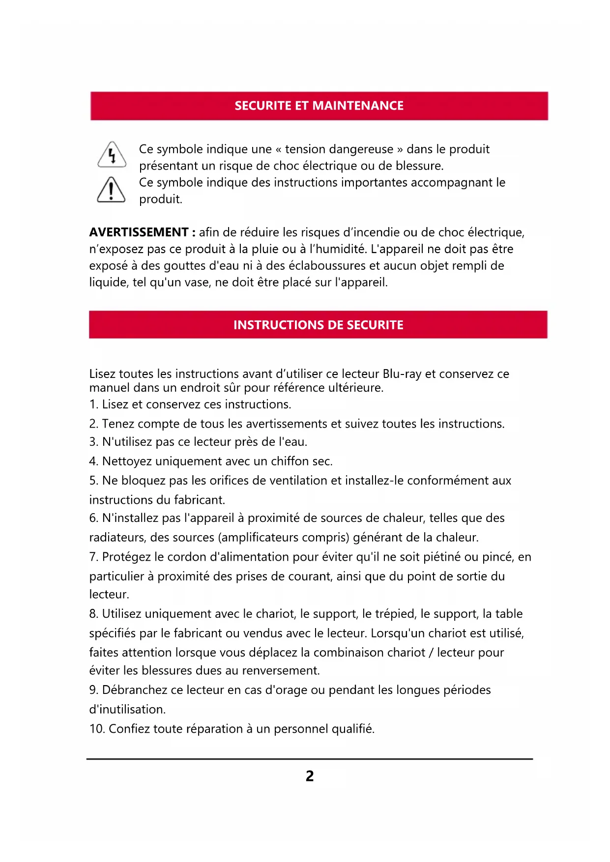 Lisez toutes les instructions avant d’utiliser ce lecteur Blu-ray et conservez ce manuel dans un endroit sûr pour référence ultérieure.