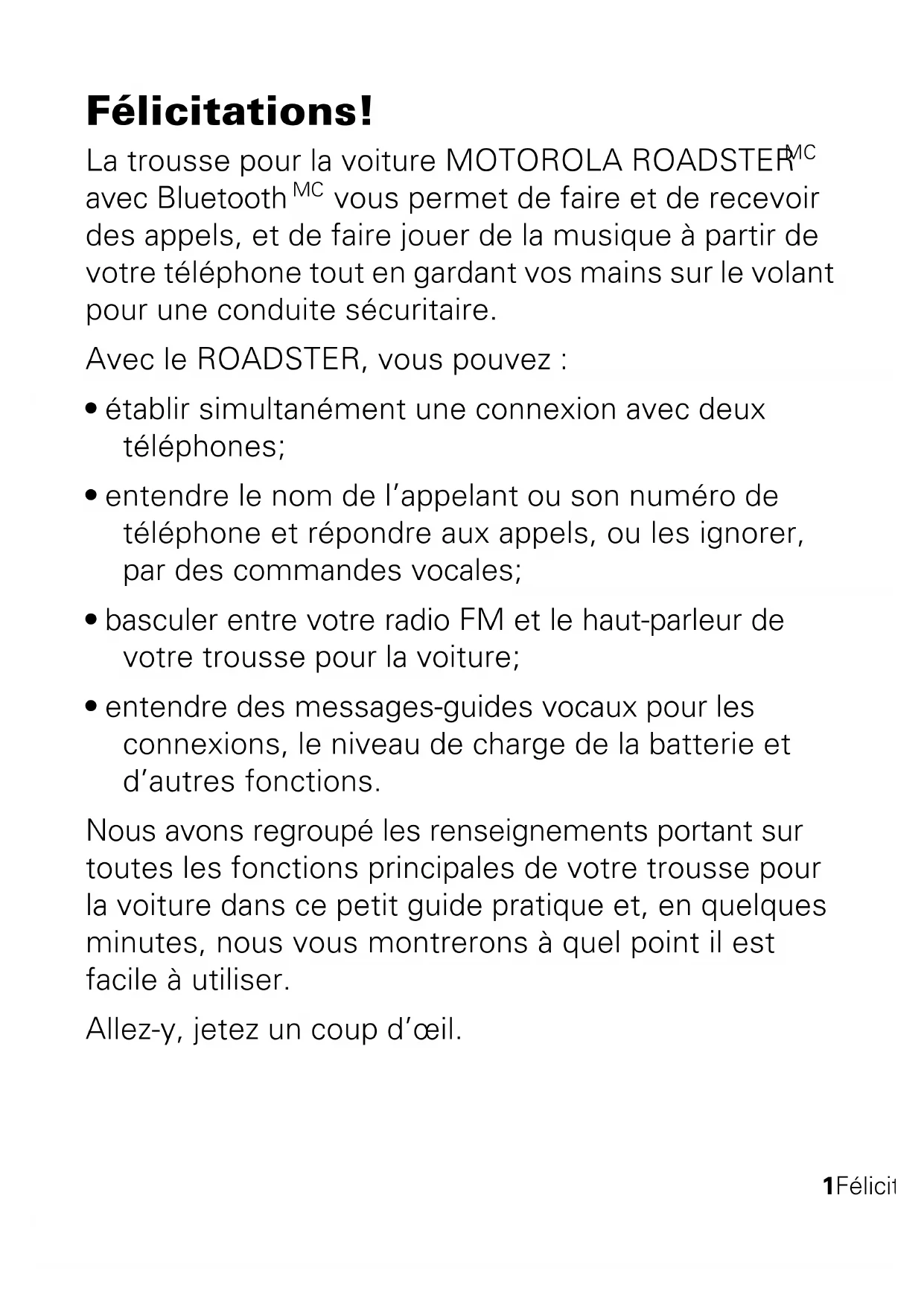 MODE D'EMPLOI Roadster MOTOROLA