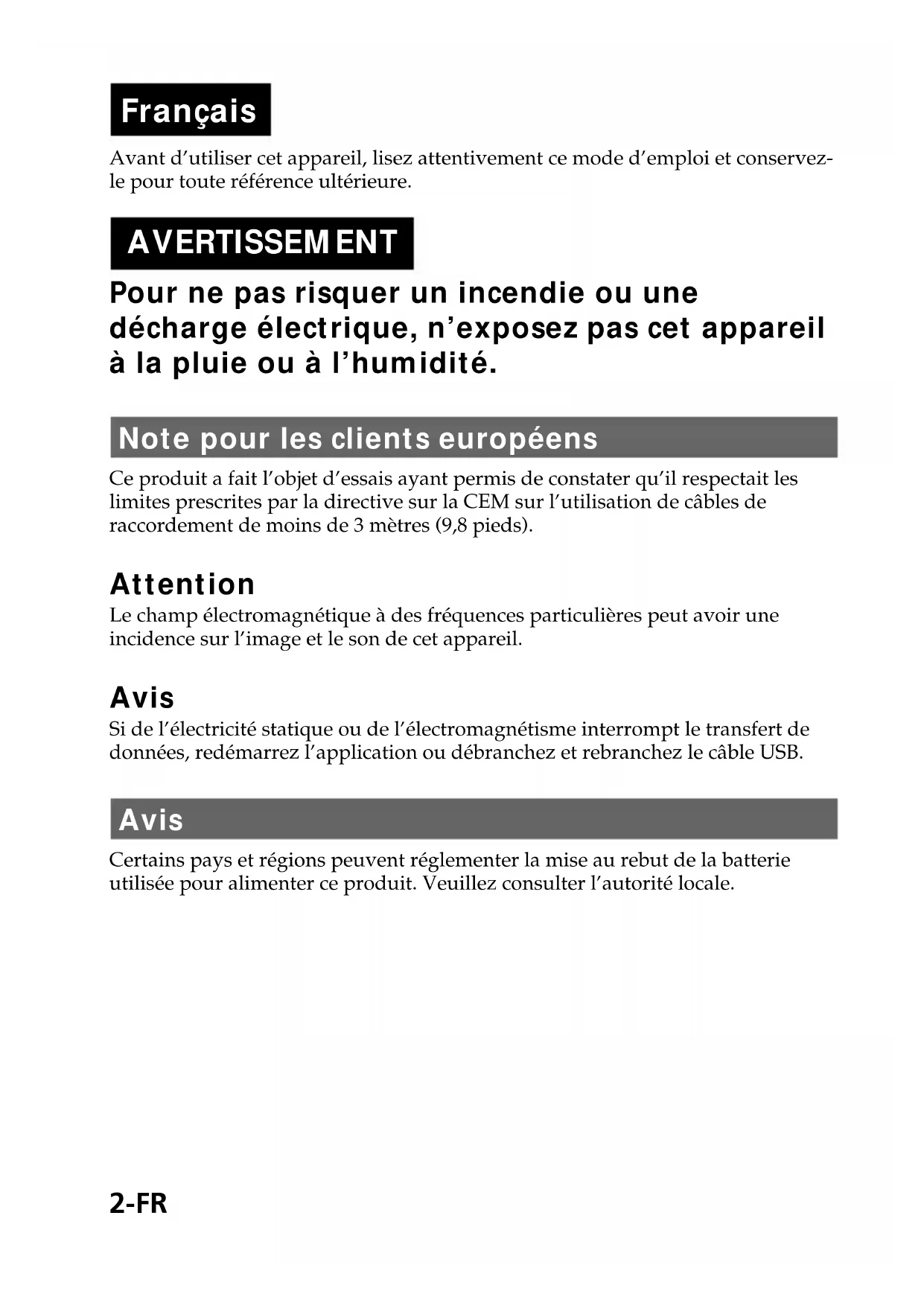 - Marques commerciales -FR Précautions p. 245