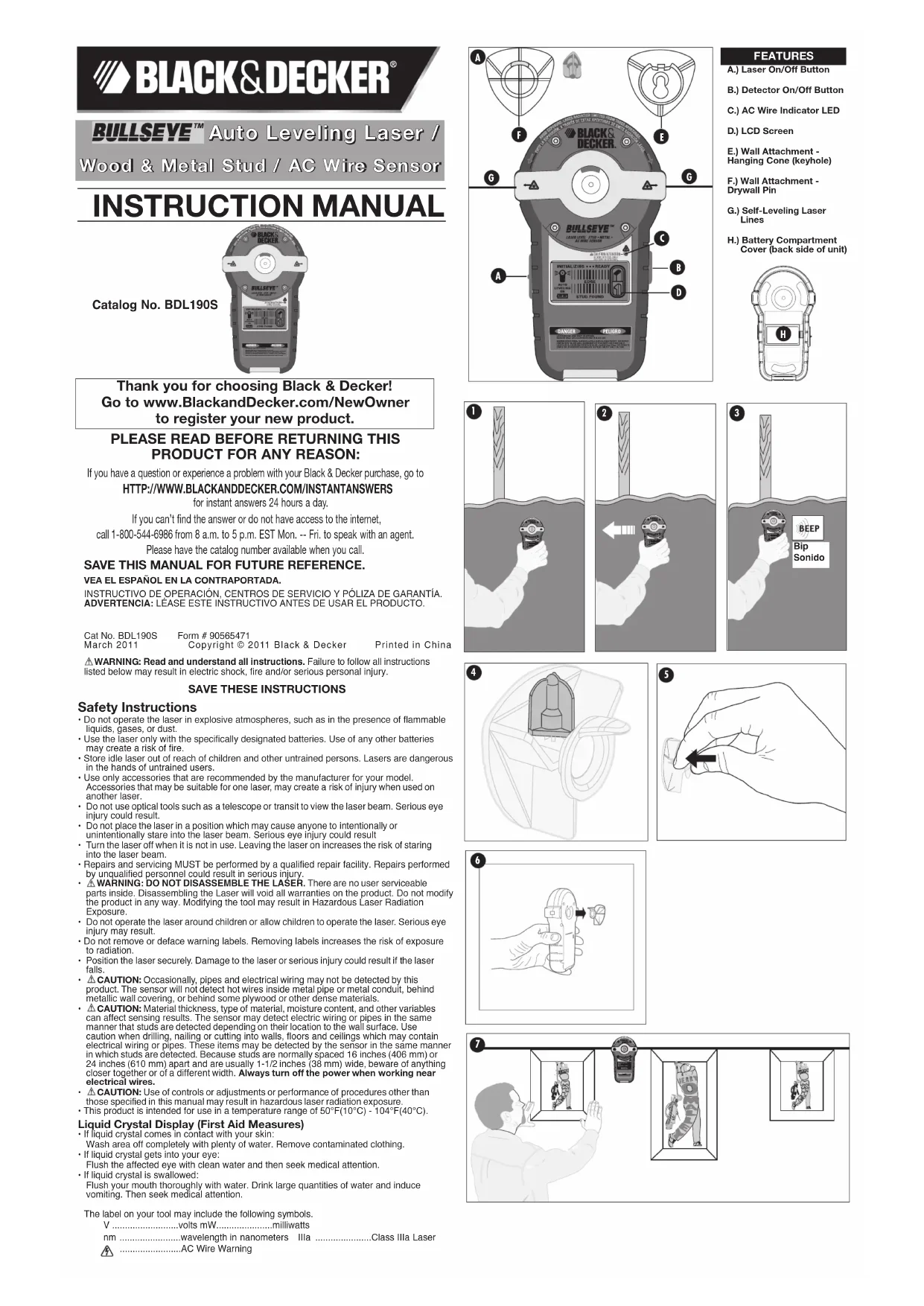 Retrouvez gratuitement la notice de l'appareil Bullseye BDL190S BLACK & DECKER au format PDF.
