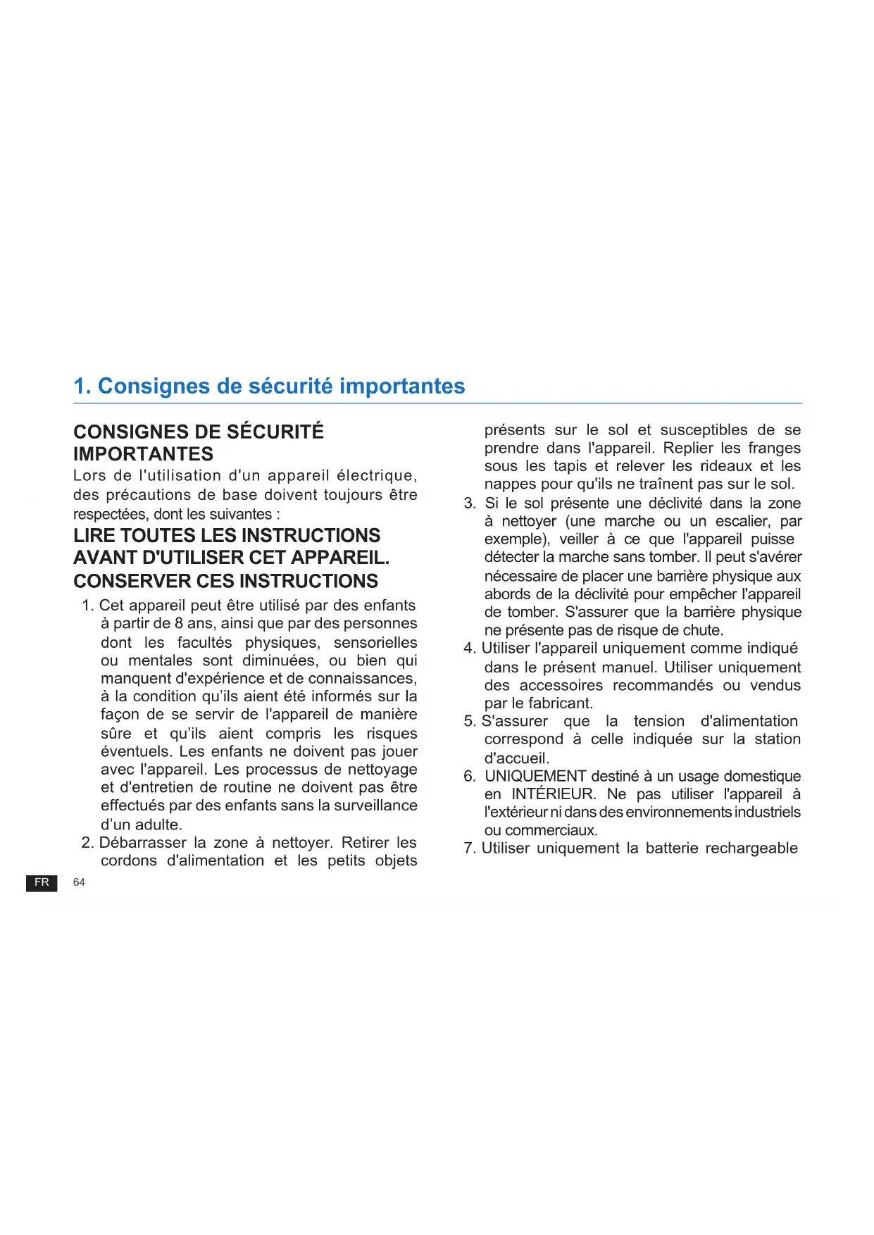 des personnes qualiées peuvent remplacer. Pour remplacer la batterie du robot, contacter le service clientèle.