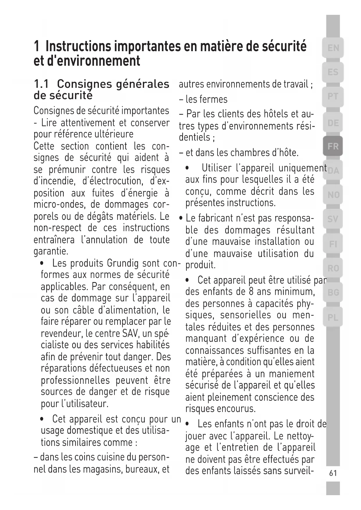 1 Instructions importantes en matière de sécurité et d’environnement frites.