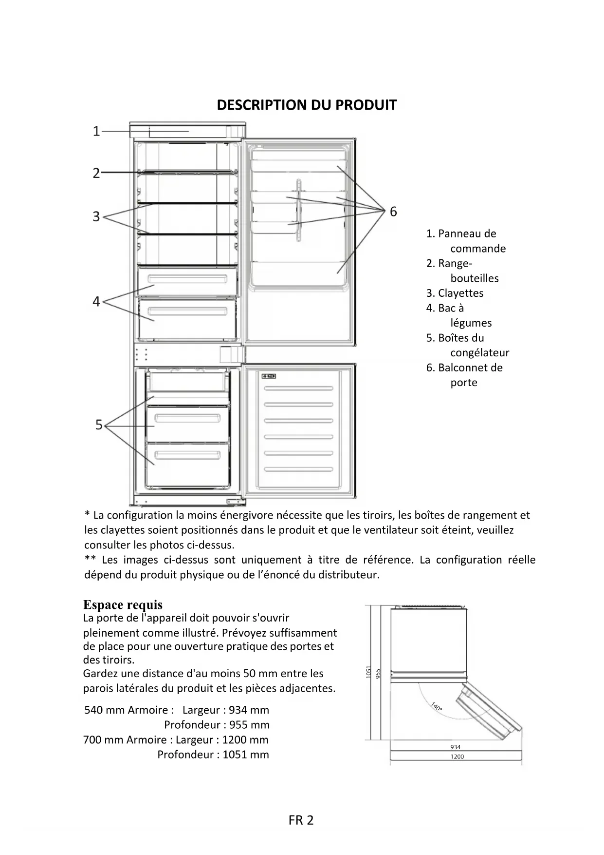 140° 540 mm Armoire : Largeur : 934 mmProfondeur : 955 mm700 mm Armoire : Largeur : 1200 mmProfondeur : 1051 mm FR 2UTILISATION Utilisation