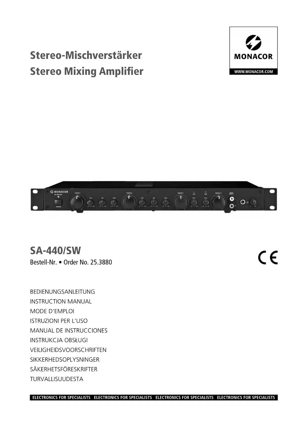 Retrouvez gratuitement la notice de l'appareil SA440SW Monacor au format PDF.
