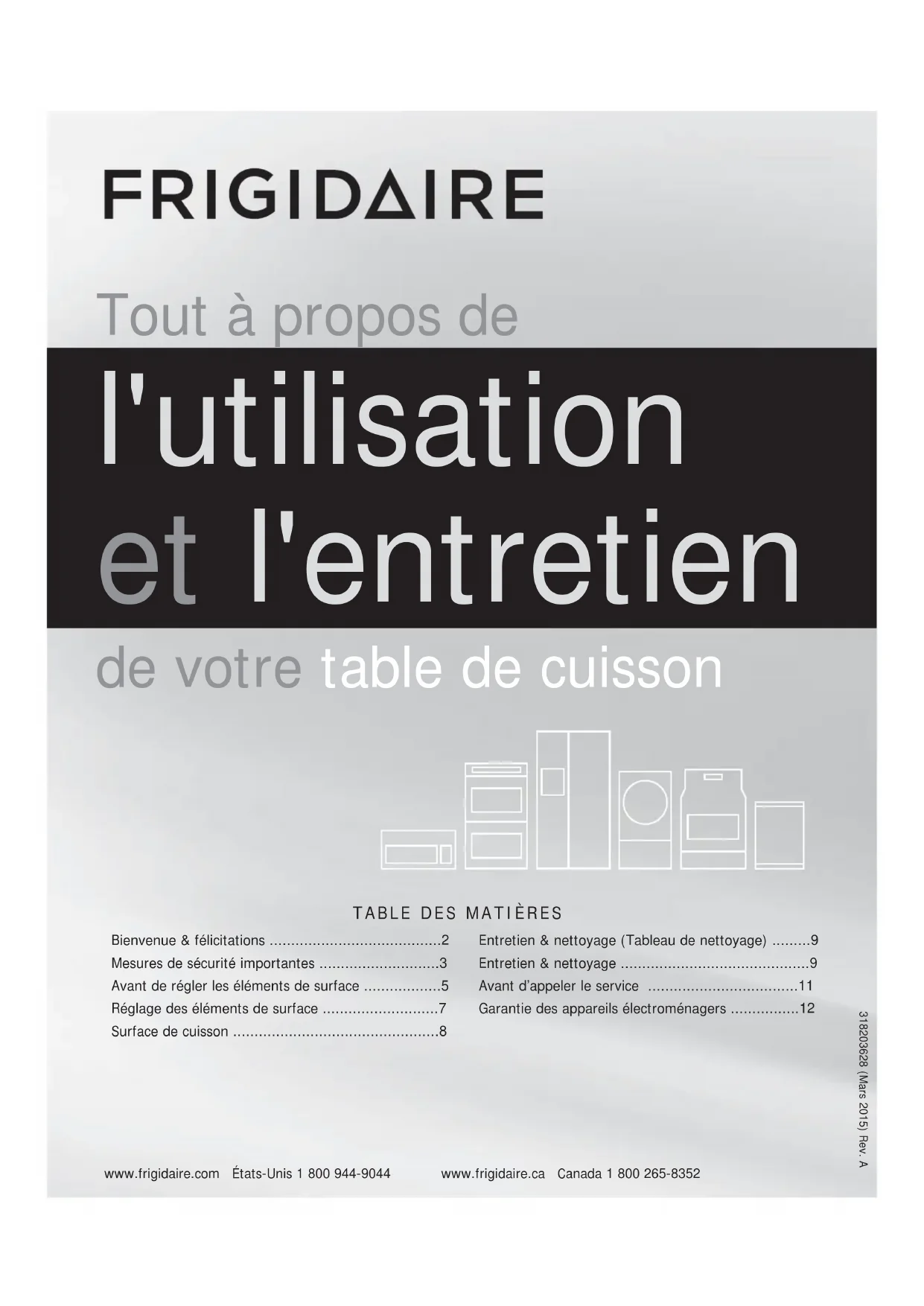 - www.frigidaire.com États-Unis 1 800 944-9044 www.frigidaire.ca Canada 1 800 265-8352 Tout à propos de l'utilisation et l'entretien de votre table de cuisson Bienvenue & félicitations p. 2