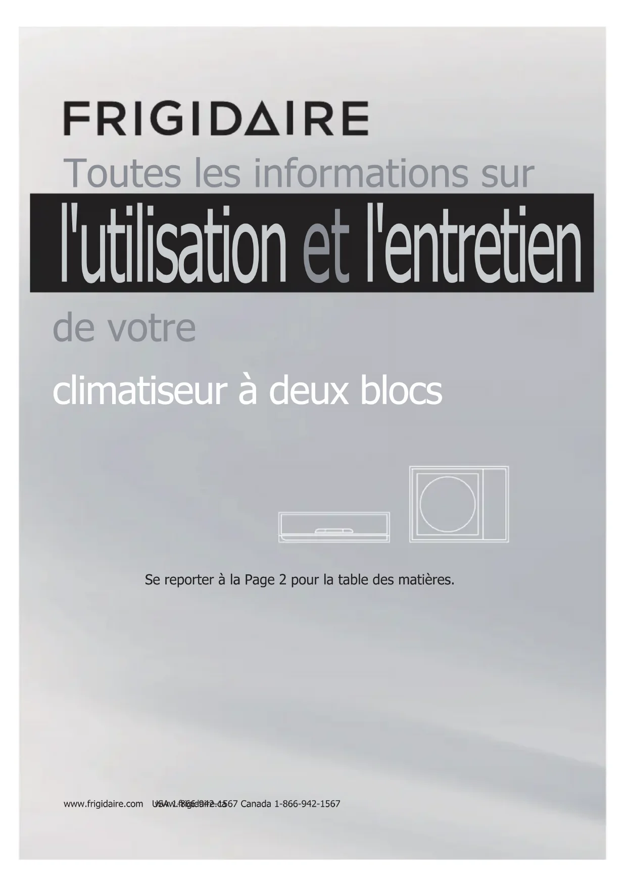 l'entretien de votre climatiseur à deux blocs USA 1-866-942-1567 Canada 1-866-942-1567Bienvenue