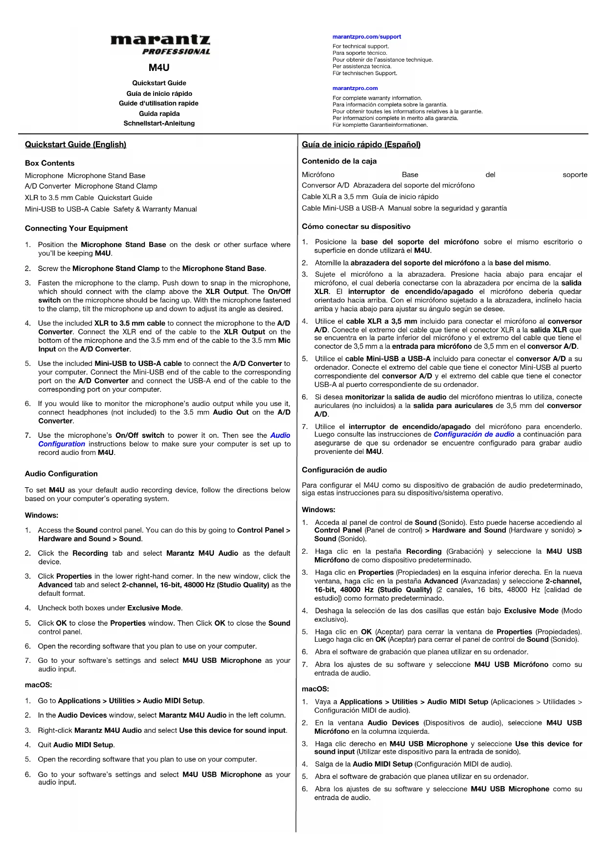 M4U - Microphone MARANTZ - Notice d'utilisation et mode d'emploi gratuit