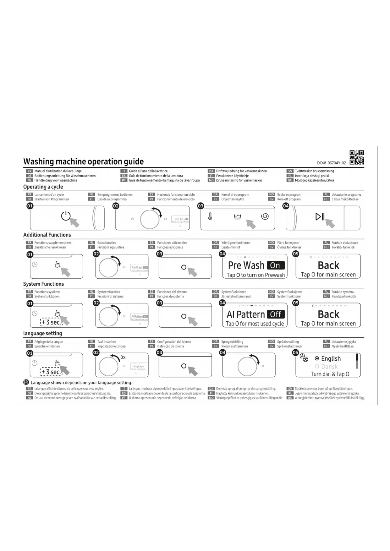 WW70T4020CE - Machine à laver SAMSUNG - Notice d'utilisation et mode d'emploi gratuit