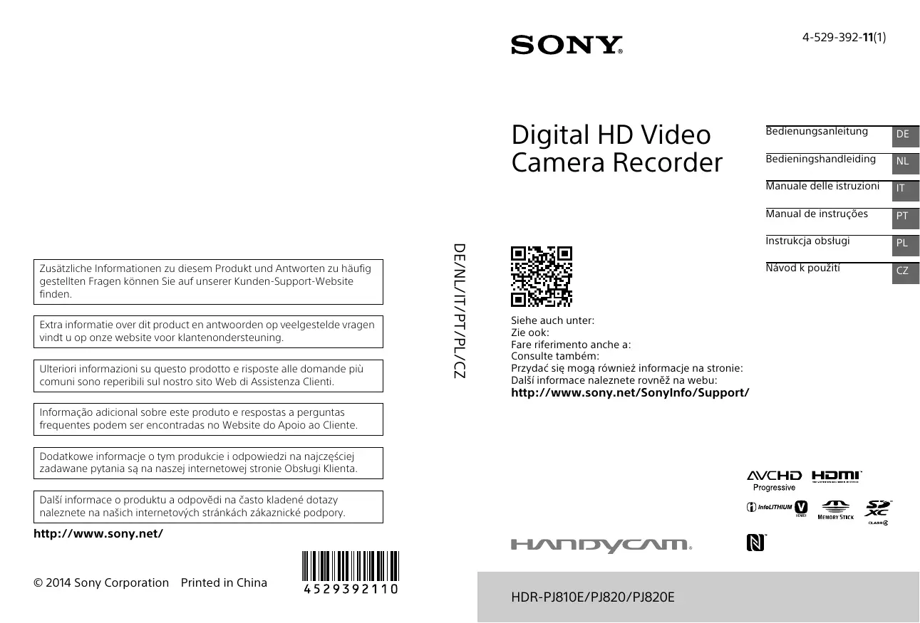 Retrouvez gratuitement la notice de l'appareil HDR-PJ810EB SONY au format PDF.