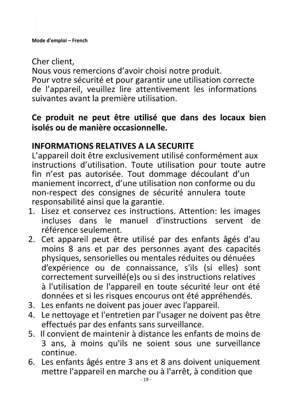 3. Les enfants ne doivent pas jouer avec l’appareil.