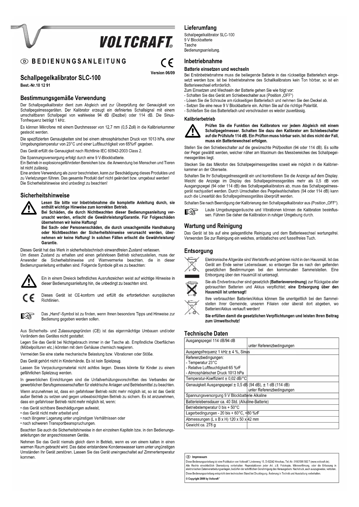 SLC100 - Sonomètres VOLTCRAFT - Notice d'utilisation et mode d'emploi gratuit