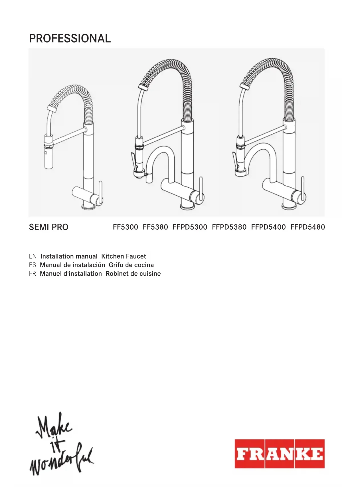 REMARQUE: Veuillez nous contacter immédiatement en cas d'incohérences. Téléphone: (1-800-626-5771) Site Web: www.franke.us/ks Courriel: ks-customerservice.us@franke.com Série FFPD5400