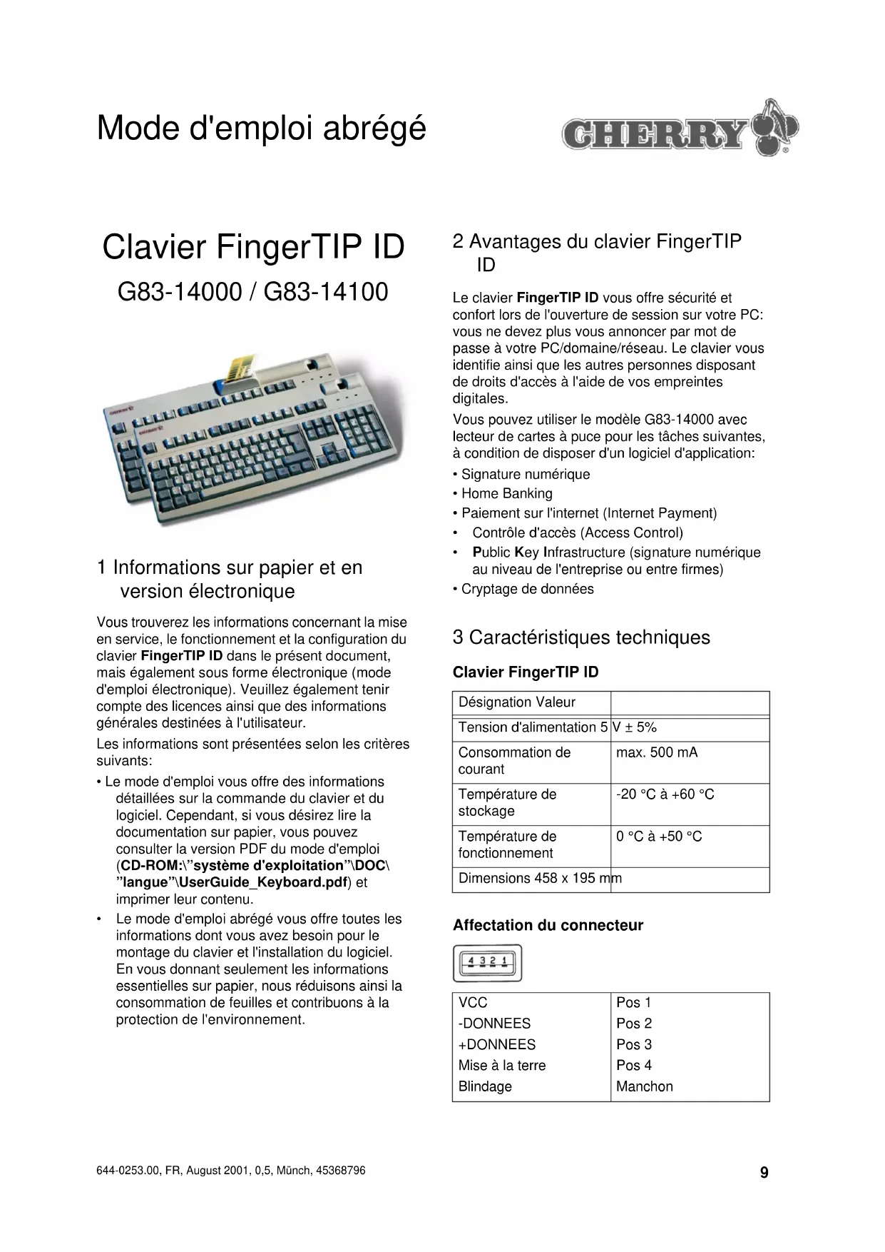MODE D'EMPLOI FingerTIP ID Board G8314001 Cherry
