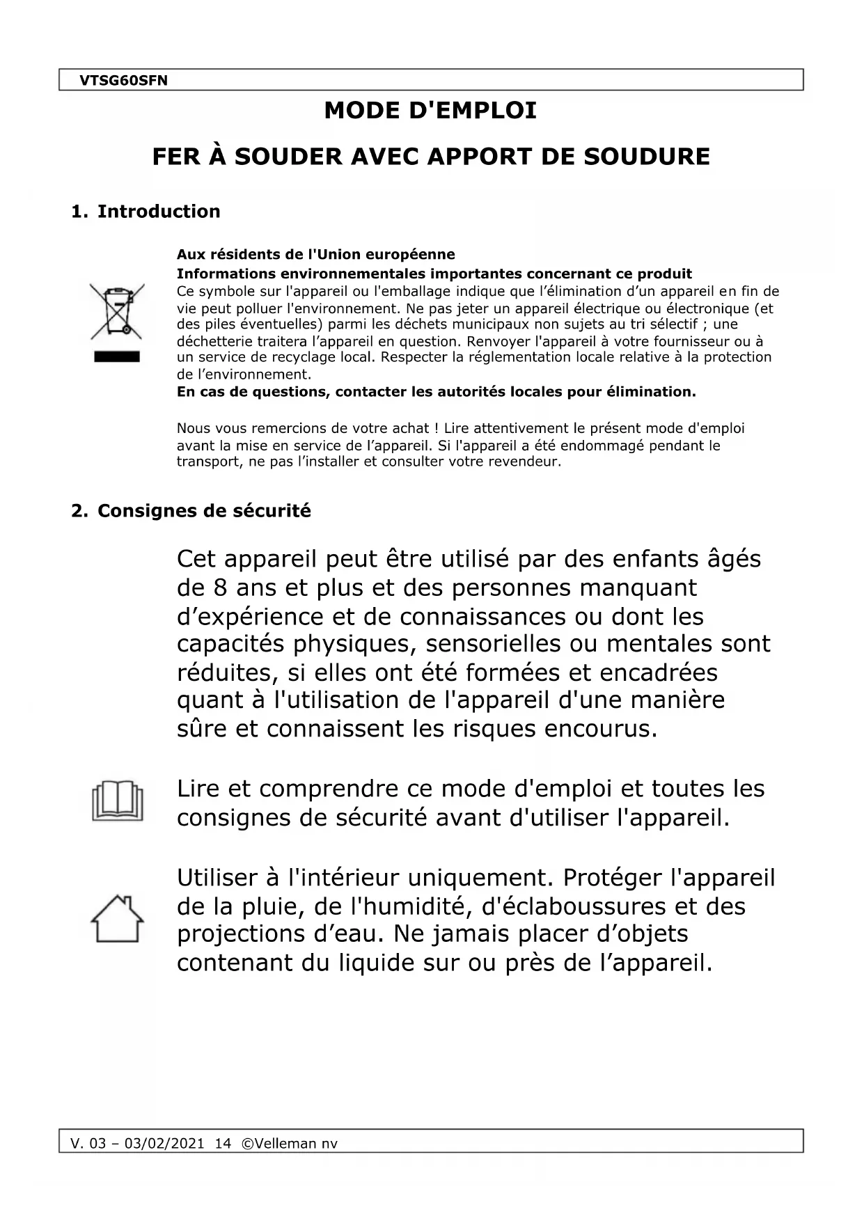MODE D'EMPLOI VTSG60SFN VELLEMAN