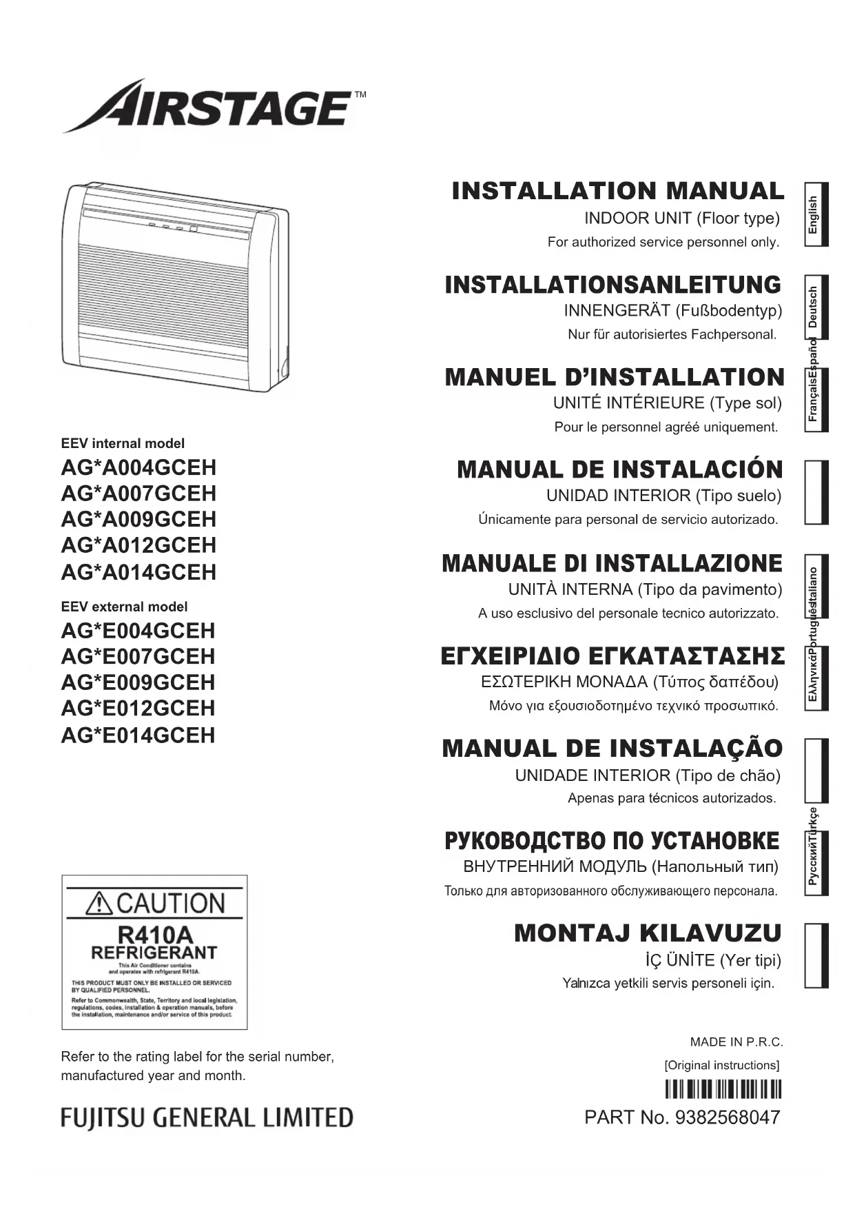 Retrouvez gratuitement la notice de l'appareil Airstage AGYE004GCEH FUJITSU au format PDF.