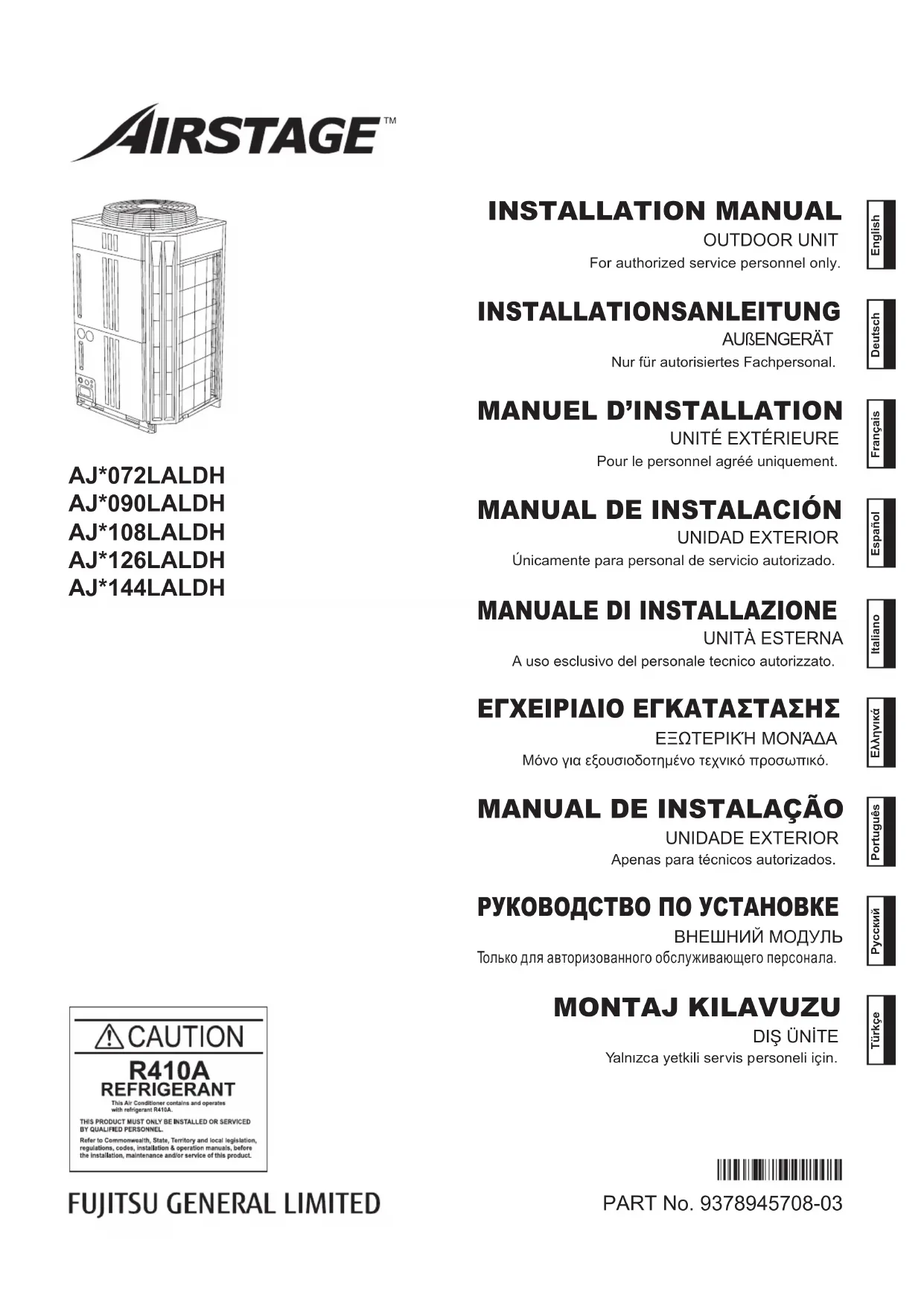Retrouvez gratuitement la notice de l'appareil AIRSTAGE AJY072LALDH FUJITSU au format PDF.