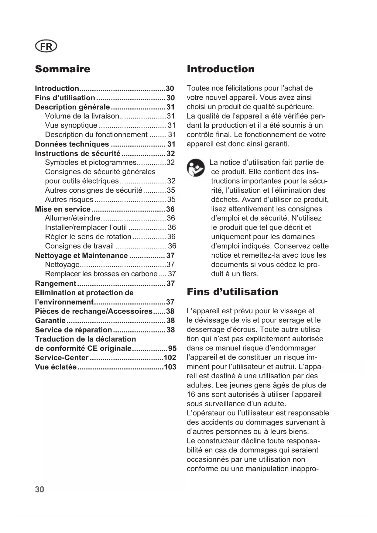 Traduction de la notice d’utilisation originale ........................... 30
