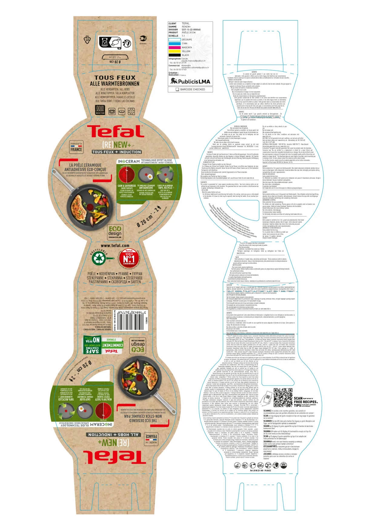 | Caractéristiques techniques | Casserole TEFAL Renew+ C4240253, diamètre 24 cm, compatible tous feux, y compris induction, revêtement antiadhésif, corps en aluminium. |