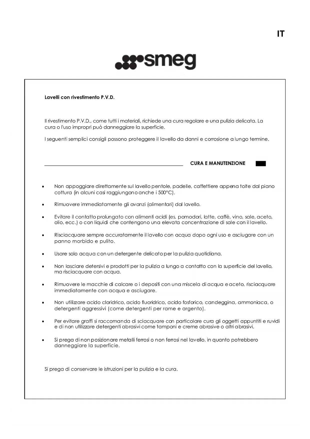 VSTR34BRX - évier SMEG - Notice d'utilisation et mode d'emploi gratuit