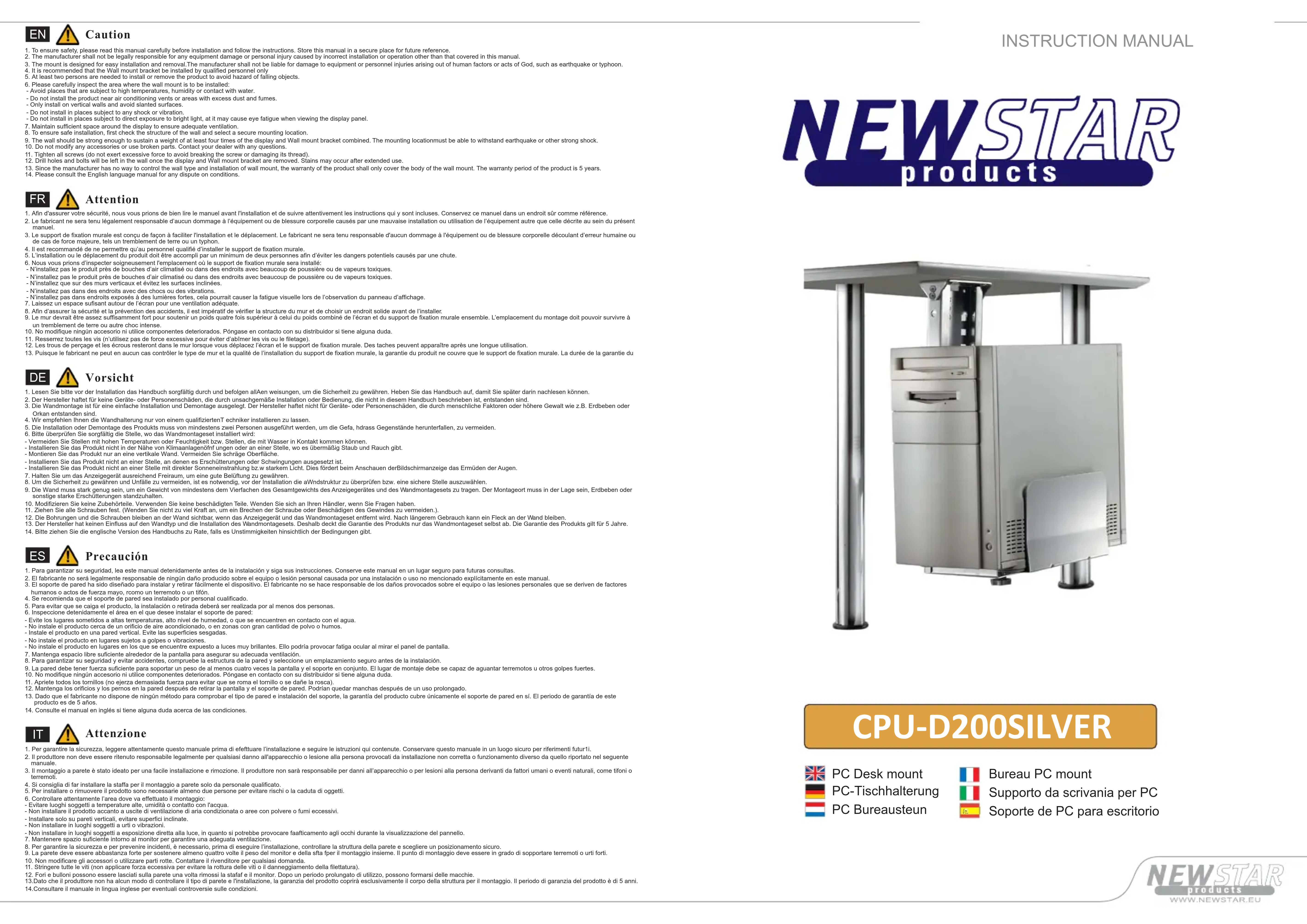 CPUD200SILVER - Support pour ordinateur Newstar - Notice d'utilisation et mode d'emploi gratuit