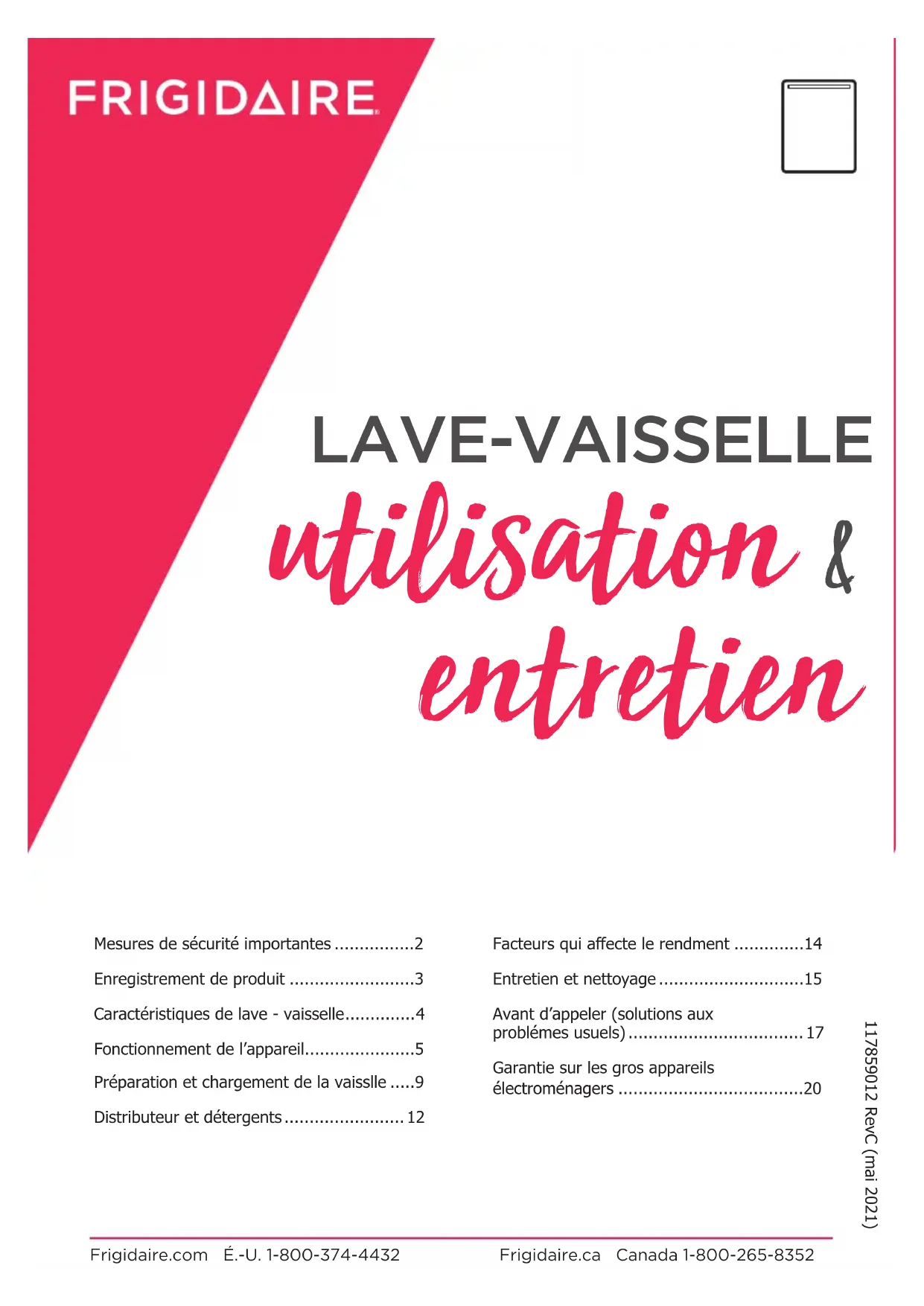 - entretien LAVE-VAISSELLE 117859012 RevC (mai 2021) Mesures de sécurité importantes p. 2