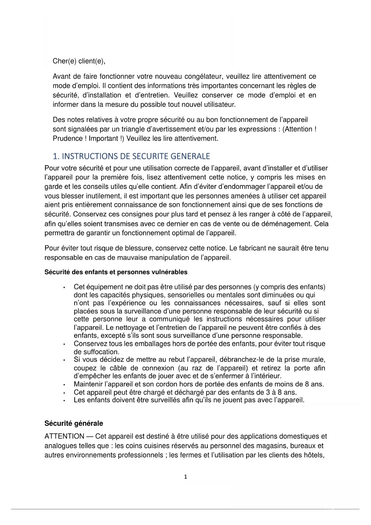 1. INSTRUCTIONS DE SECURITE GENERALE